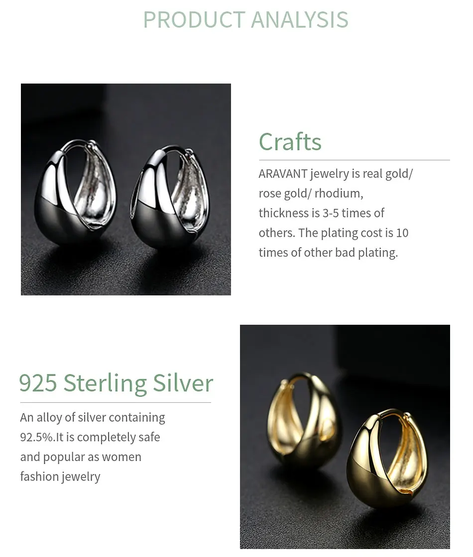 925 Silver 14mm 18K Gold Egg Hoop Earring For Women Fashion Jewelry