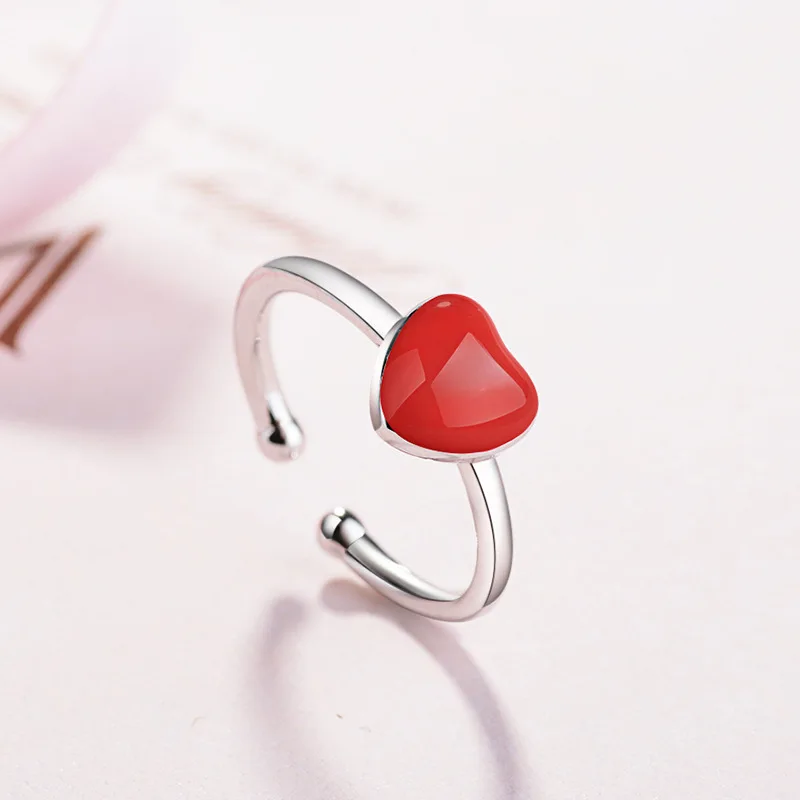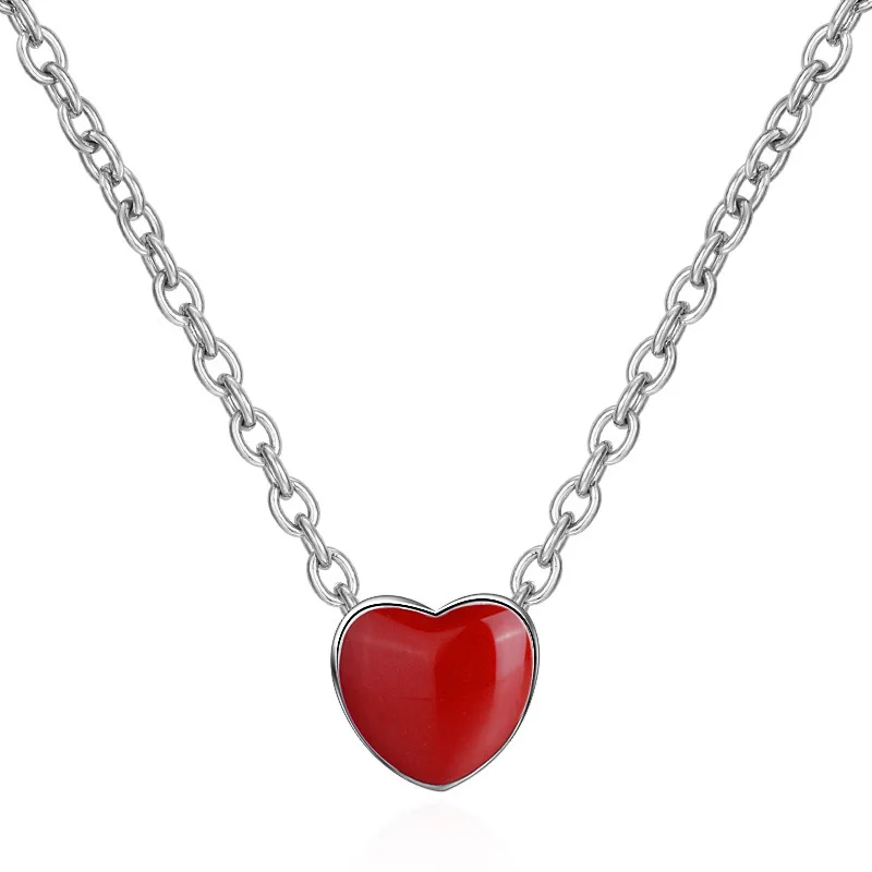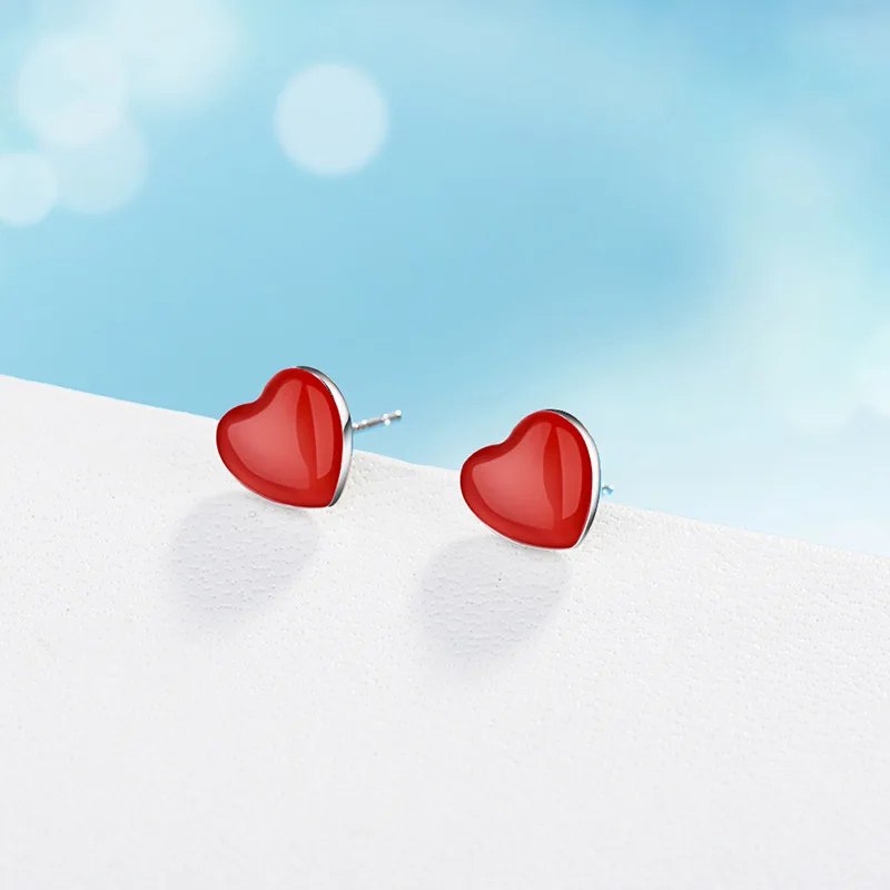 925 Sterling Silver Fine Jewelry Set Cute Red Love Heart Enamel Never Fade RI+BR+EA+NE For Women Valentine’S Day Gift