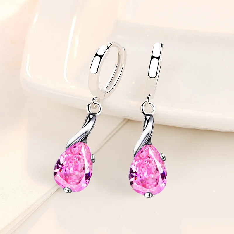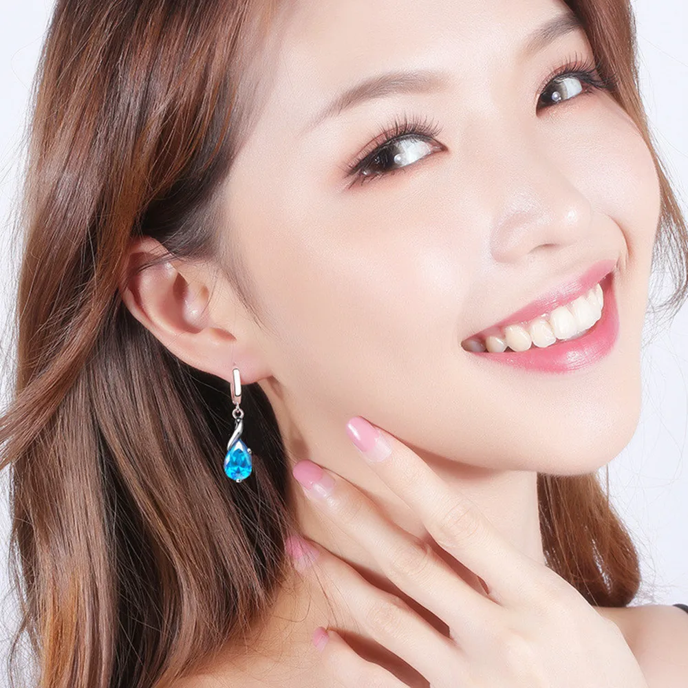 925 Sterling Silver New Woman Fashion Jewelry High Quality Blue Crystal Zircon Water Drop Mid-length Hot-selling Earrings
