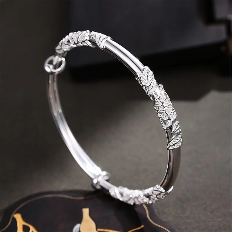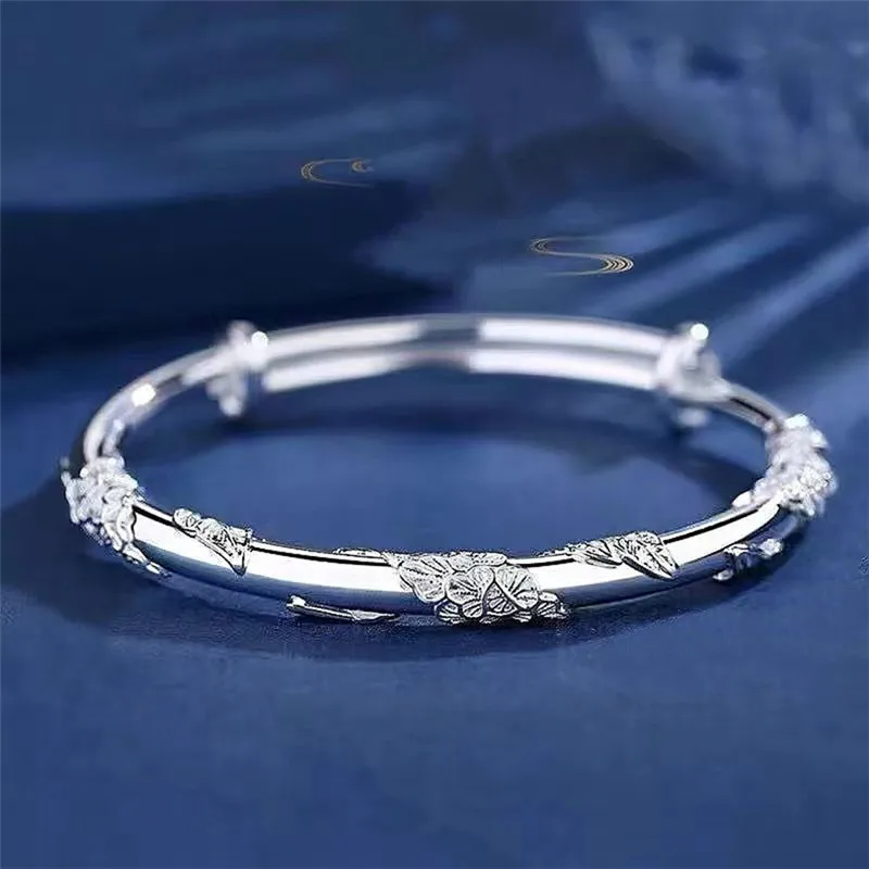 925 Sterling Silver Original Designer Blooming Flowers Bracelets Bangles For Women Fashion Party Wedding Jewelry Adjustable Gift
