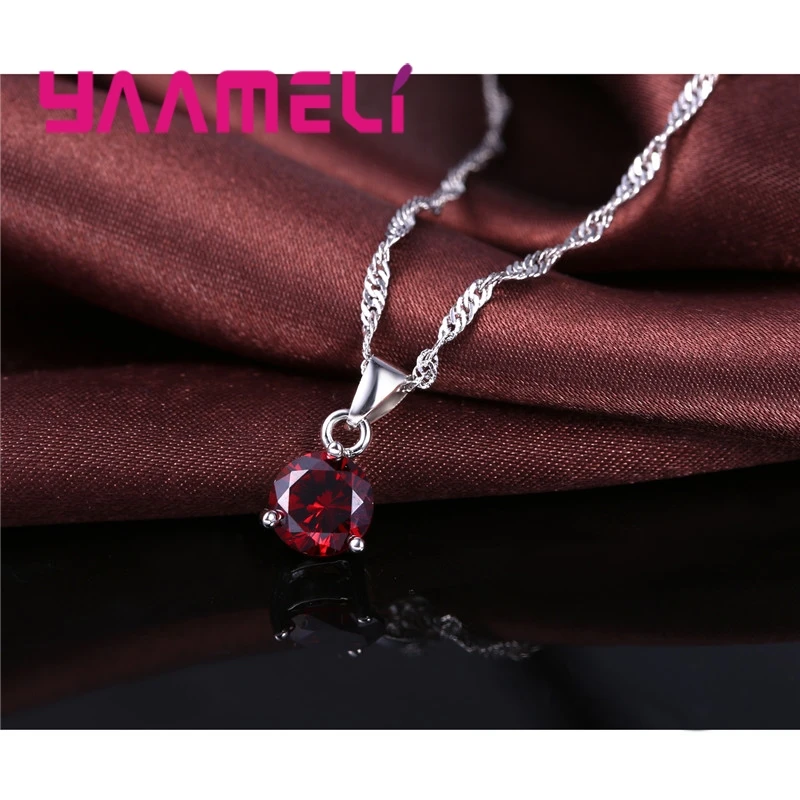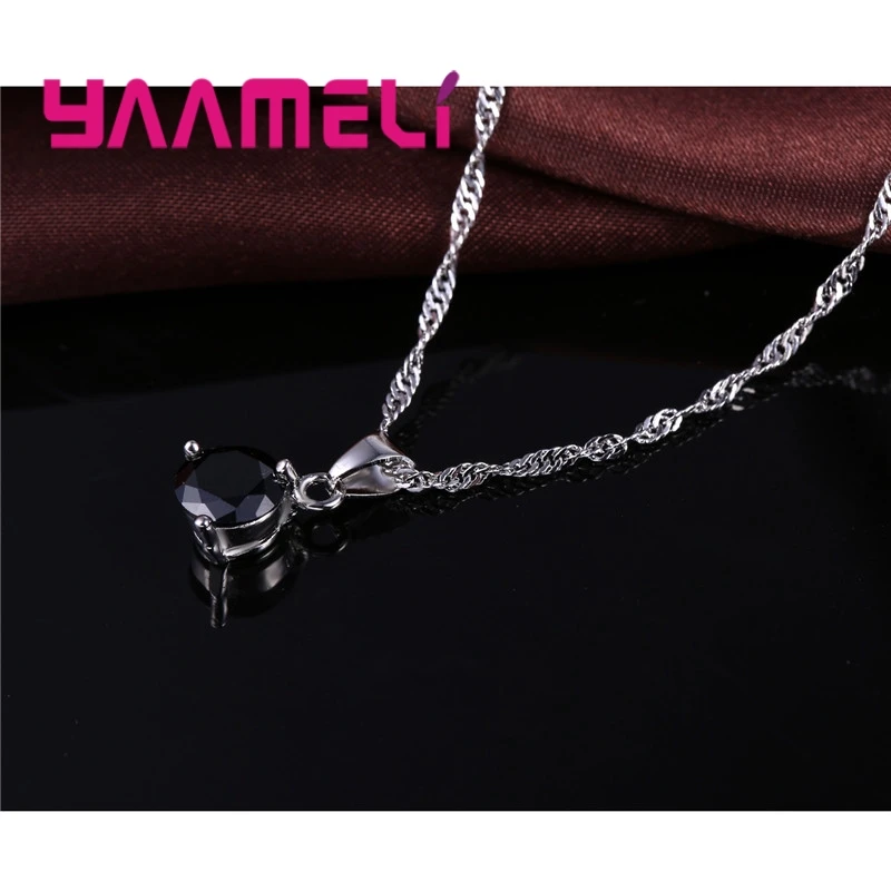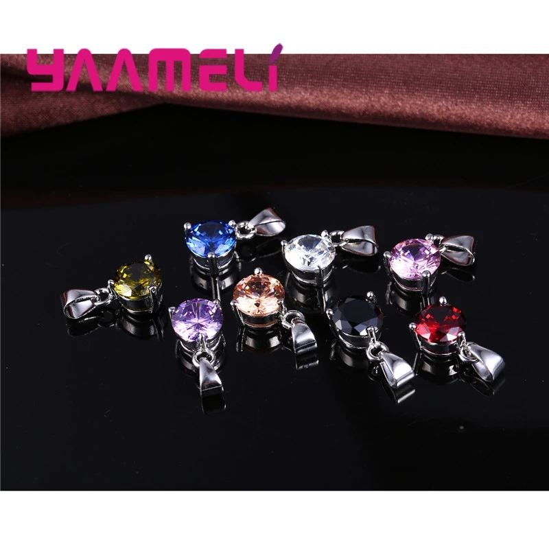 Candy 8 Colors 925 Sterling Silver Wedding Elegant Jewelry Sets Crystal Pendant Collar Necklace Earrings