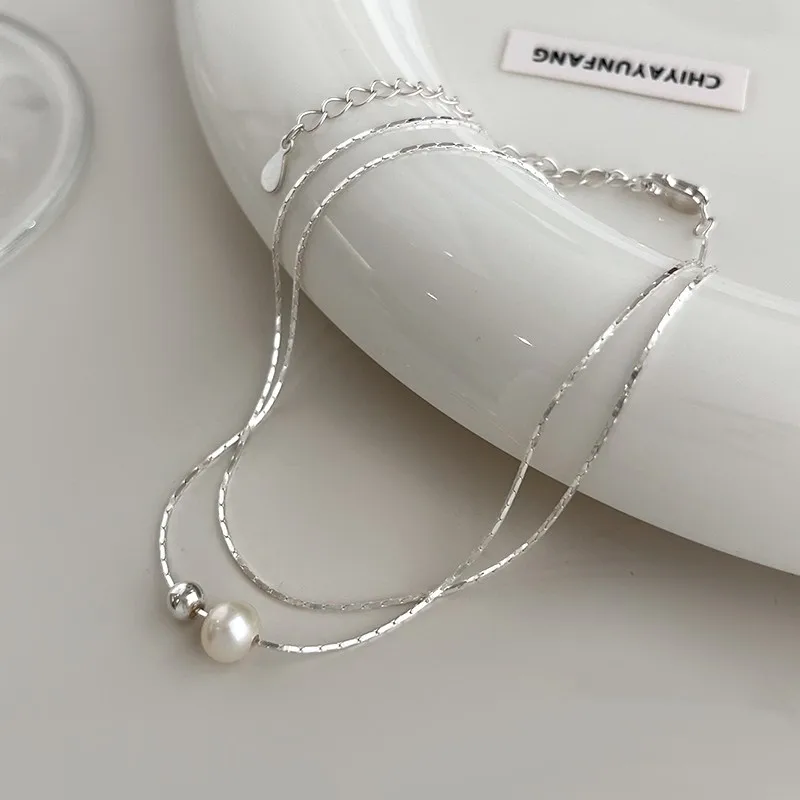 Christmas Gift 925 Sterling Silver Exquisite Pearl Necklace French Vintage Style Collar Chain Luxury Jewelry Holiday Gift