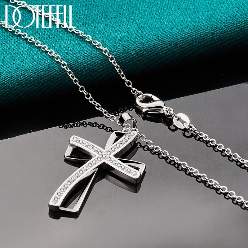 DOTEFFIL 925 Sterling Silver 16-30 Inch Chain Cross AAA Zircon Pendant Necklace For Woman Fashion Wedding Party Charm Jewelry