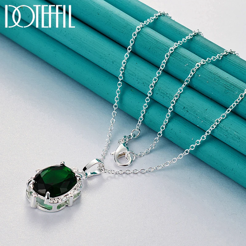 DOTEFFIL 925 Sterling Silver Green Zircon AAAAA Pendant Necklace 16-30 Inch Chain For Woman Fashion Wedding Party Charm Jewelry