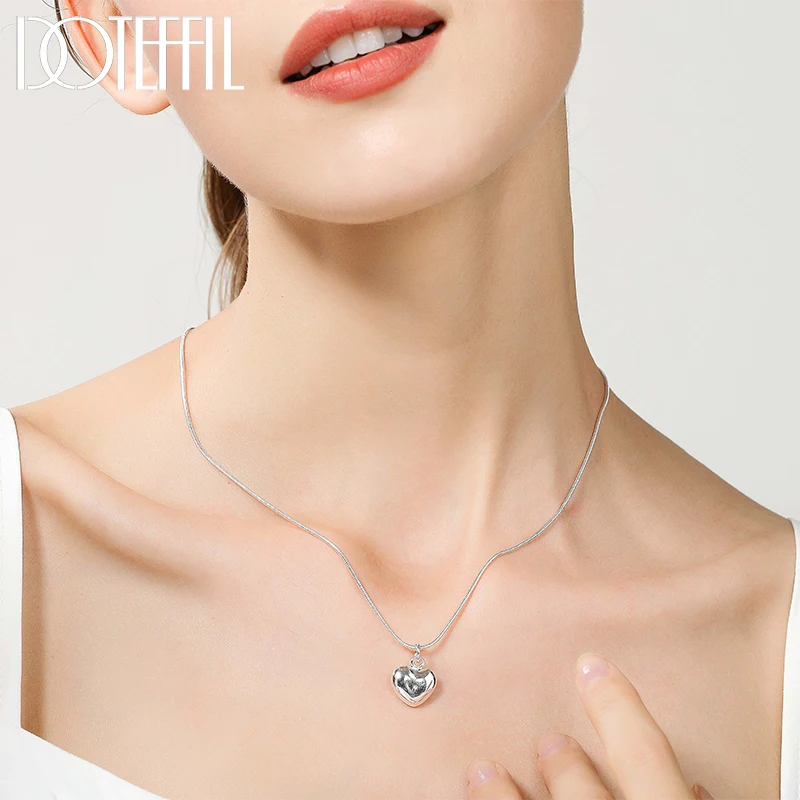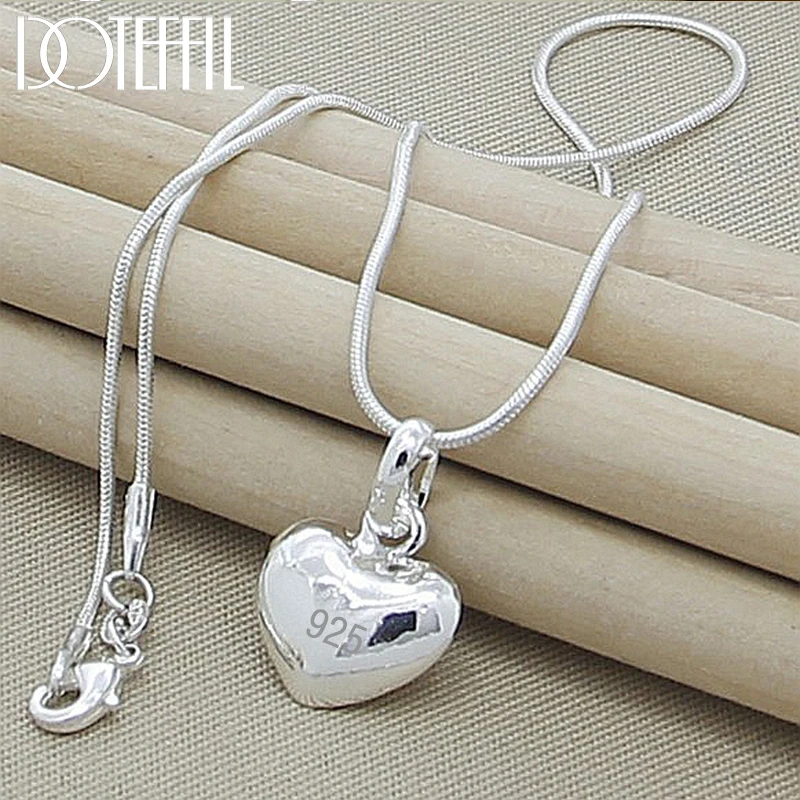 DOTEFFIL 925 Sterling Silver Solid Small Heart Pendant Necklace 16-30 Inch Snake Chain For Women Wedding Charm Fashion Jewelry