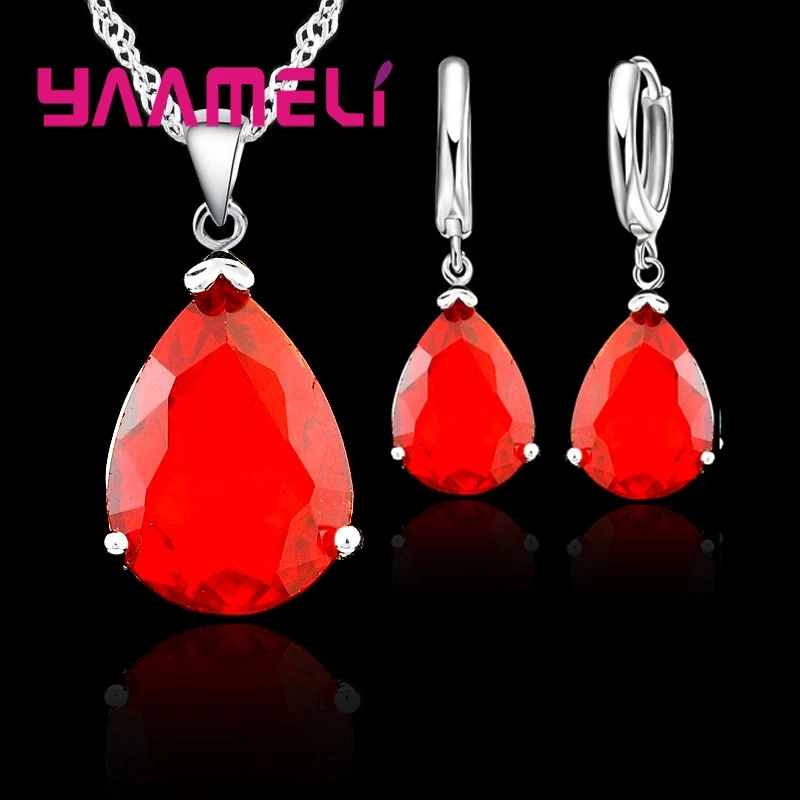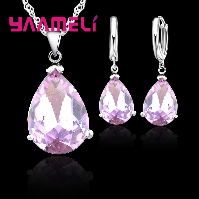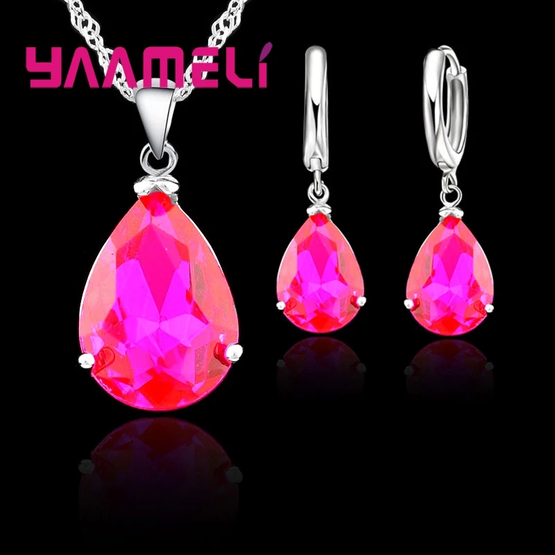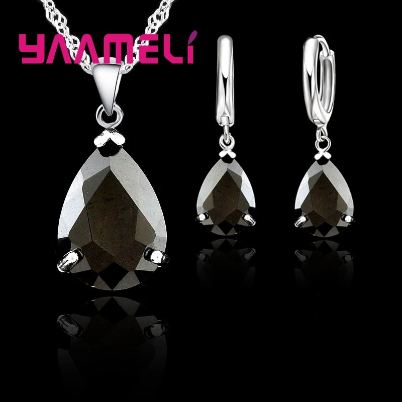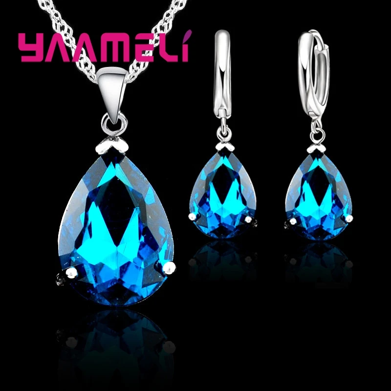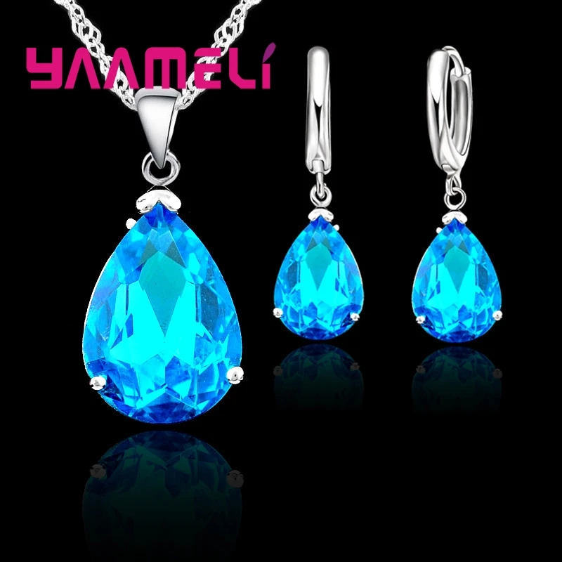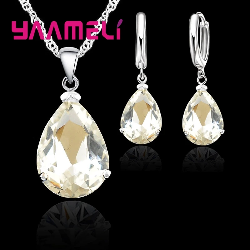 Elegant Water Drop Woman Party Wedding Jewelry 925 Sterling Silver AAA Cubic Zircon Fashion Crystal Earring Necklace Set