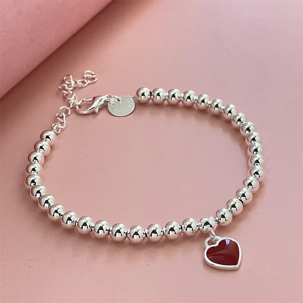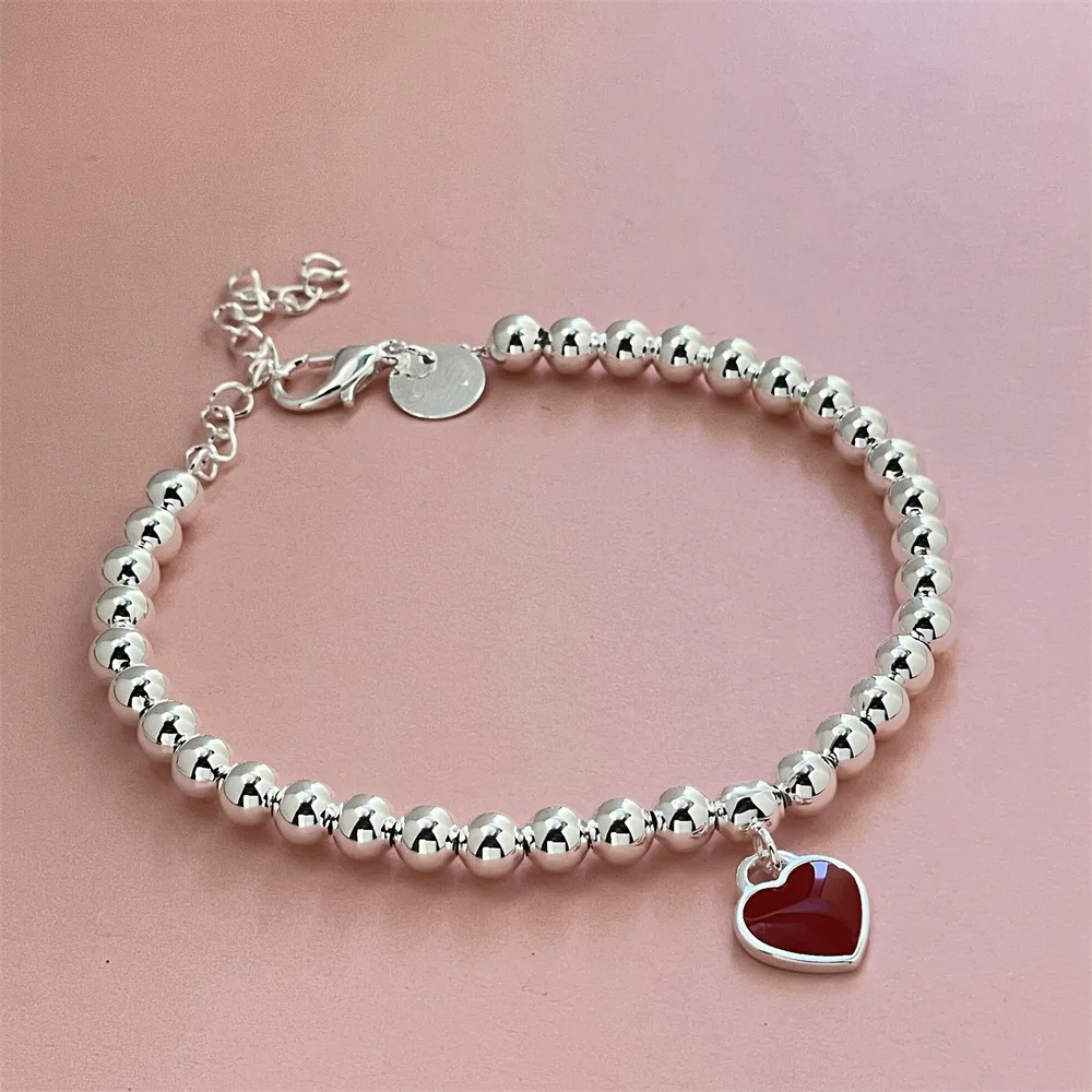 Fashion 925 Sterling Silver Bracelet Red Heart Brand Charm Women Classic Fashion Party Jewelry Gift