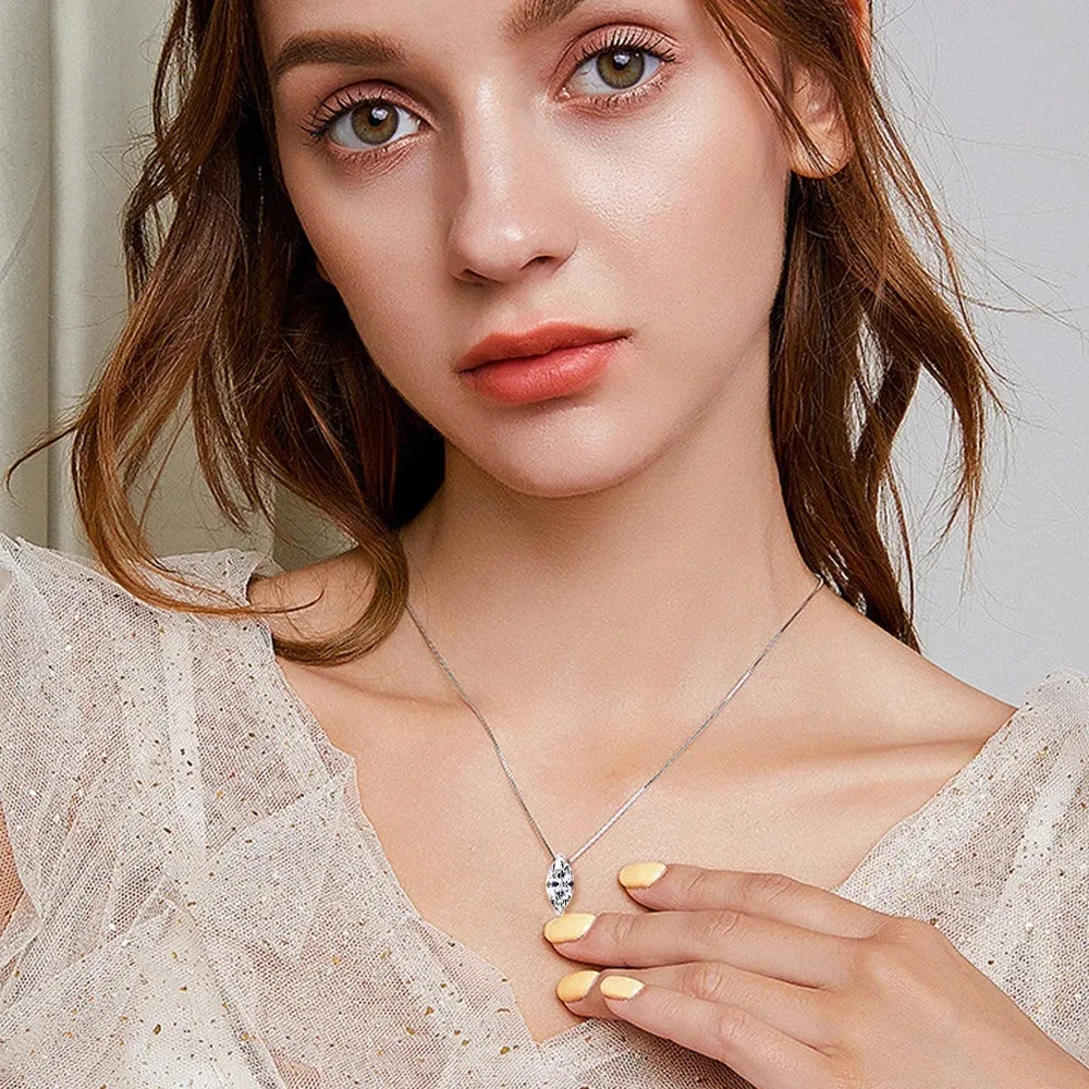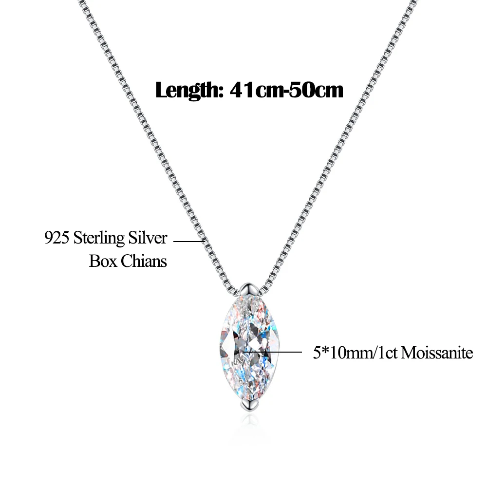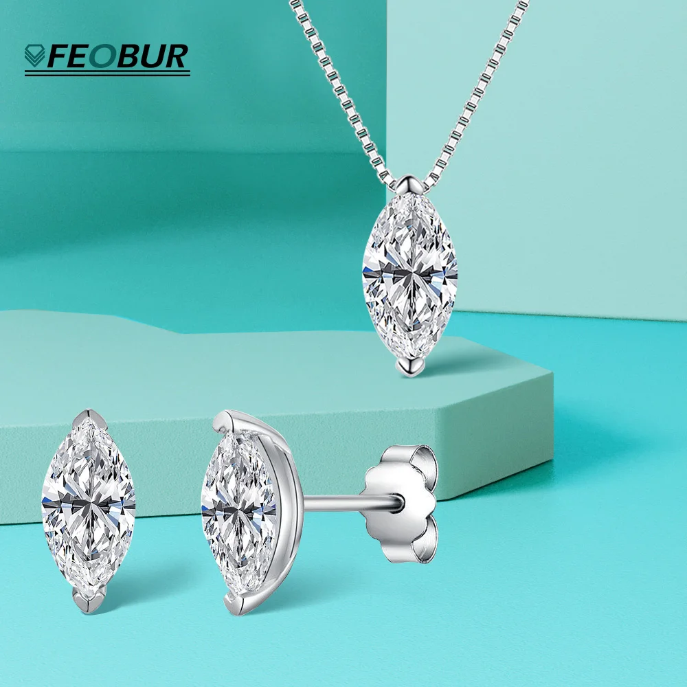 FEOBUR 5*10mm 1CT Marquise Cut Moissanite Pendant Necklace Stud Earrings Set for Women 925 Sterling Silver Earstud Jewelry Gift