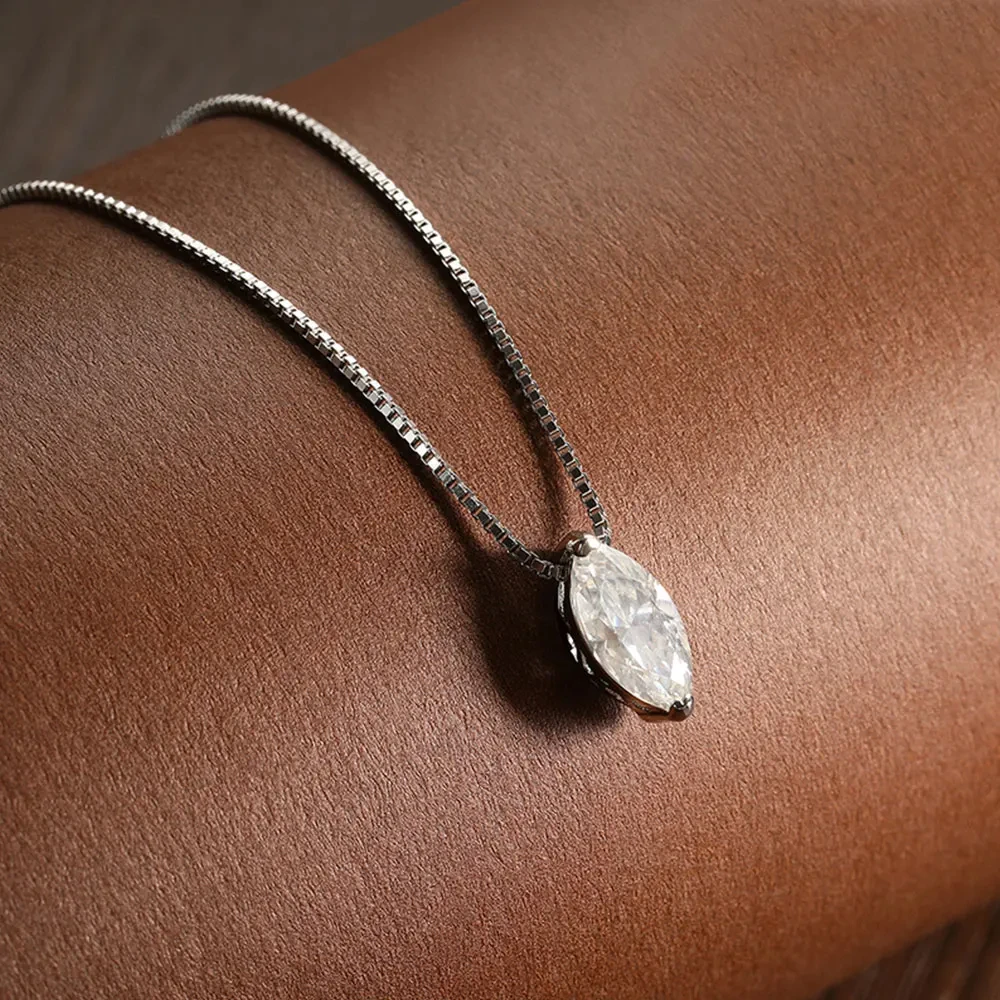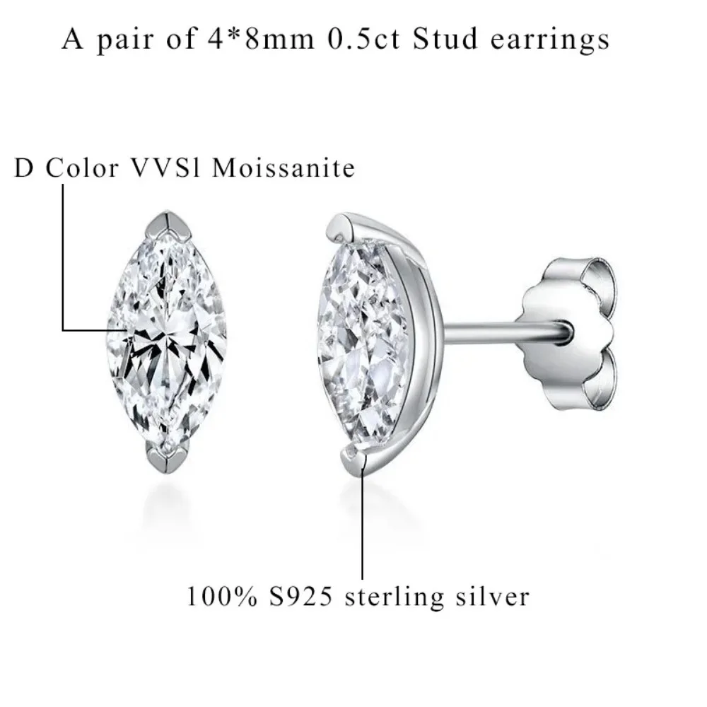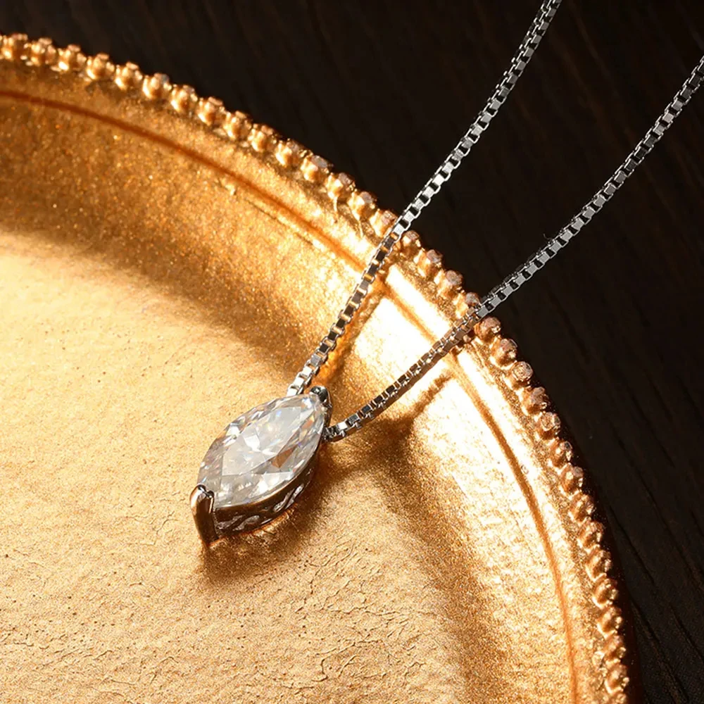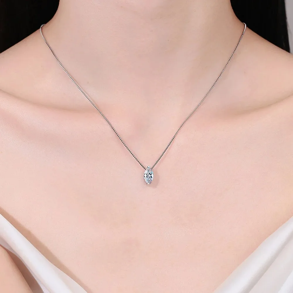 FEOBUR 5*10mm 1CT Marquise Cut Moissanite Pendant Necklace Stud Earrings Set for Women 925 Sterling Silver Earstud Jewelry Gift