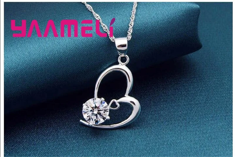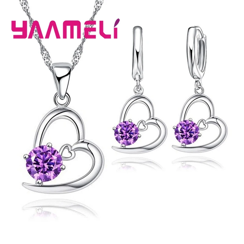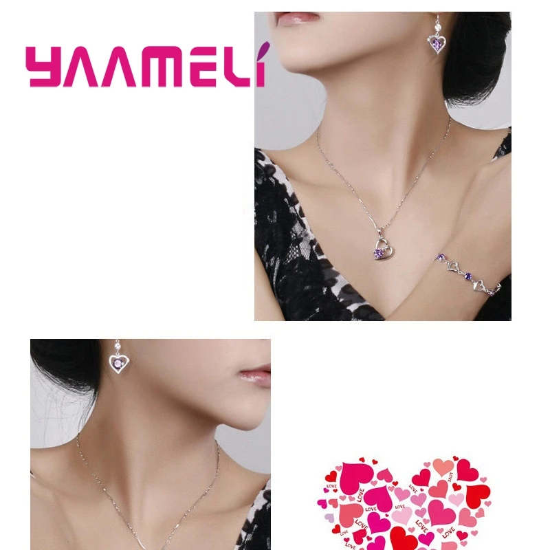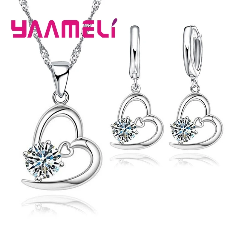 Hot Sale 925 Sterling Silver Bridal Wedding Jewelry Set for Women Heart CZ Crystal Engagement Necklaces Earrings Accessory