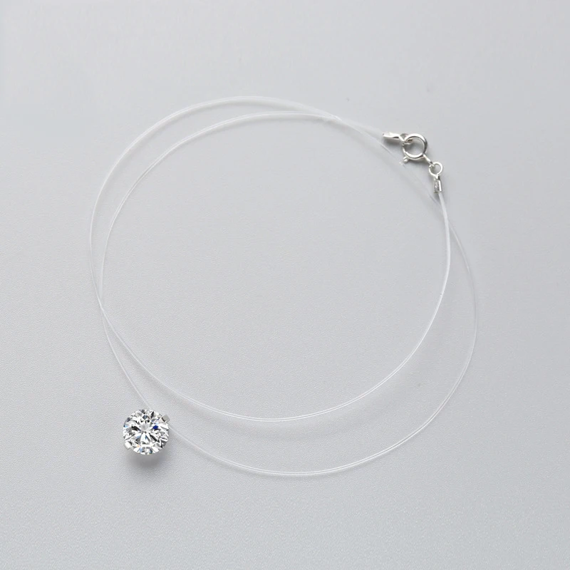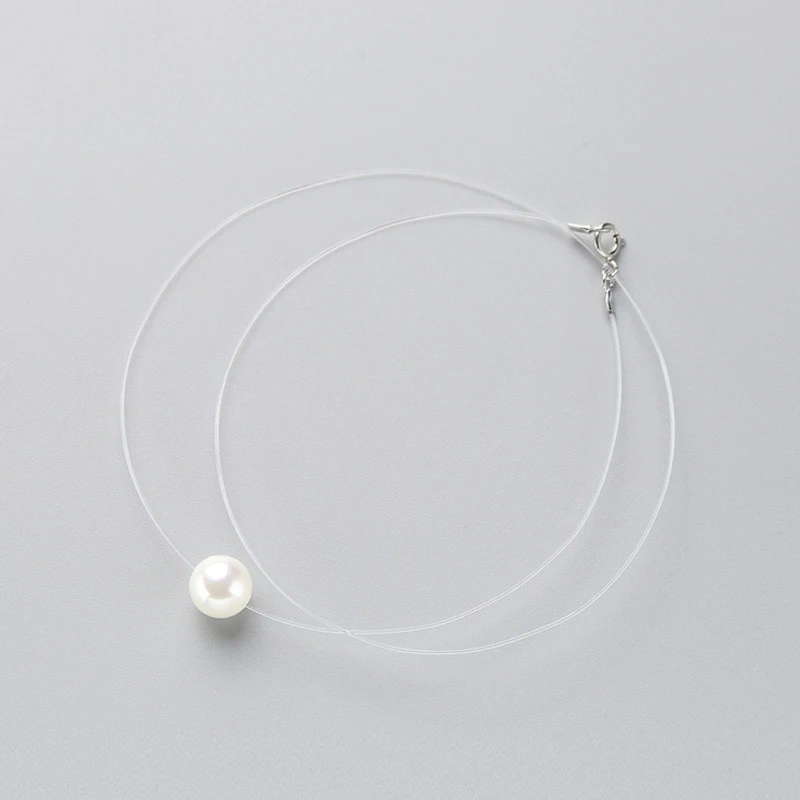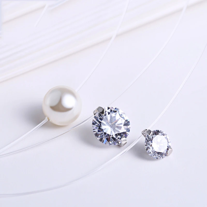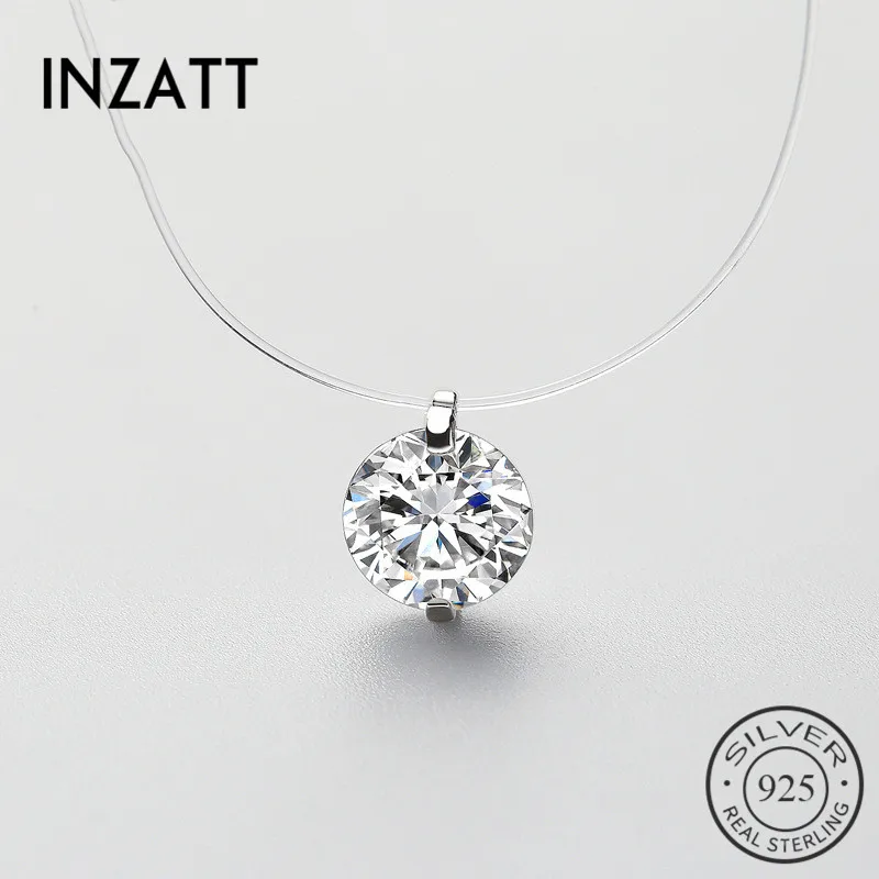 INZATT 925 Sterling Silver Zircon Crystal Pearl Pendant Choker Necklace Transparent Fishing Line 2020 Fine Jewelry For Women