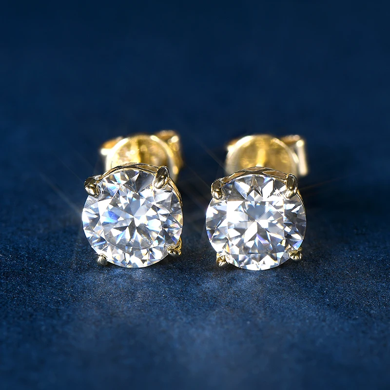 IOGOU 14k Gold Earrings Real 6mm Moissanite Diamond Stud Earrings for Men Women 10K Yellow Gold Screw Back Earrings Fine Jewelry