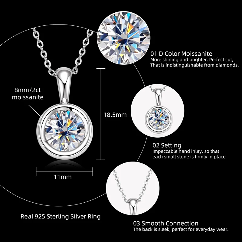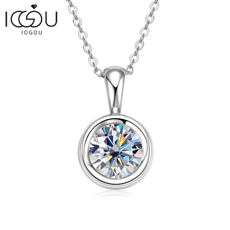 IOGOU Moissanite Pendant D Color VVS1 8.0mm 2.0carat 925 Sterling Silver Original Certified Women’s Necklaces Engagement Jewelry