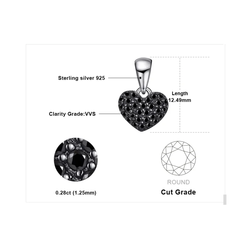 JewelryPalace Heart Love Natural Black Spinel Gemstone 925 Sterling Silver Pendant Necklace for Women Fashion Jewelry No Chain