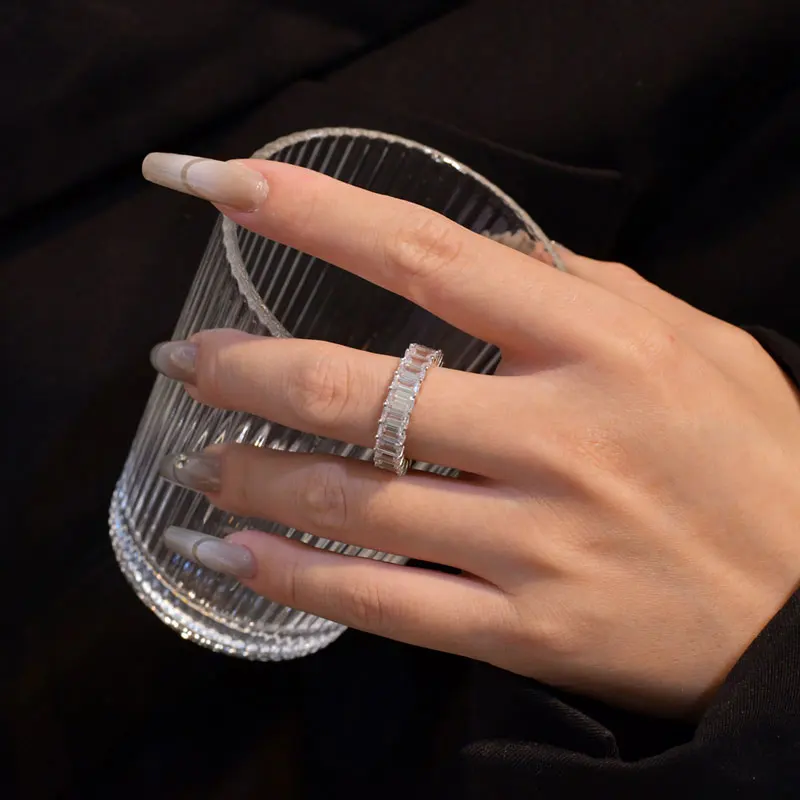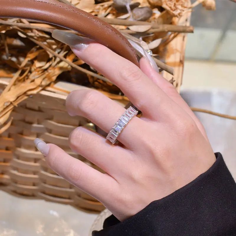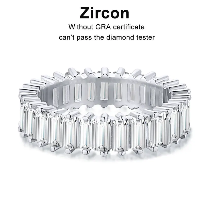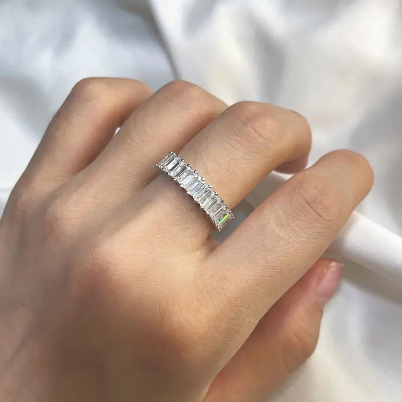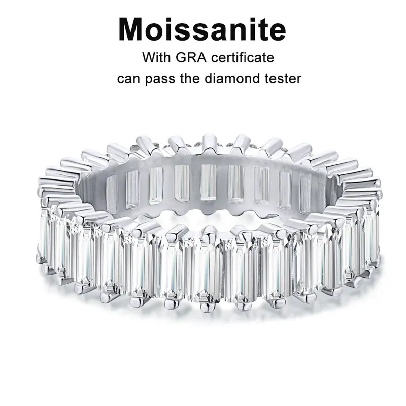 Knobspin 2*4mm D VVS1 Emerald Cut Full Mossanite Ring for Women Man 925 Sterling Sliver Plated 18k Classic Diamond Eternity Band