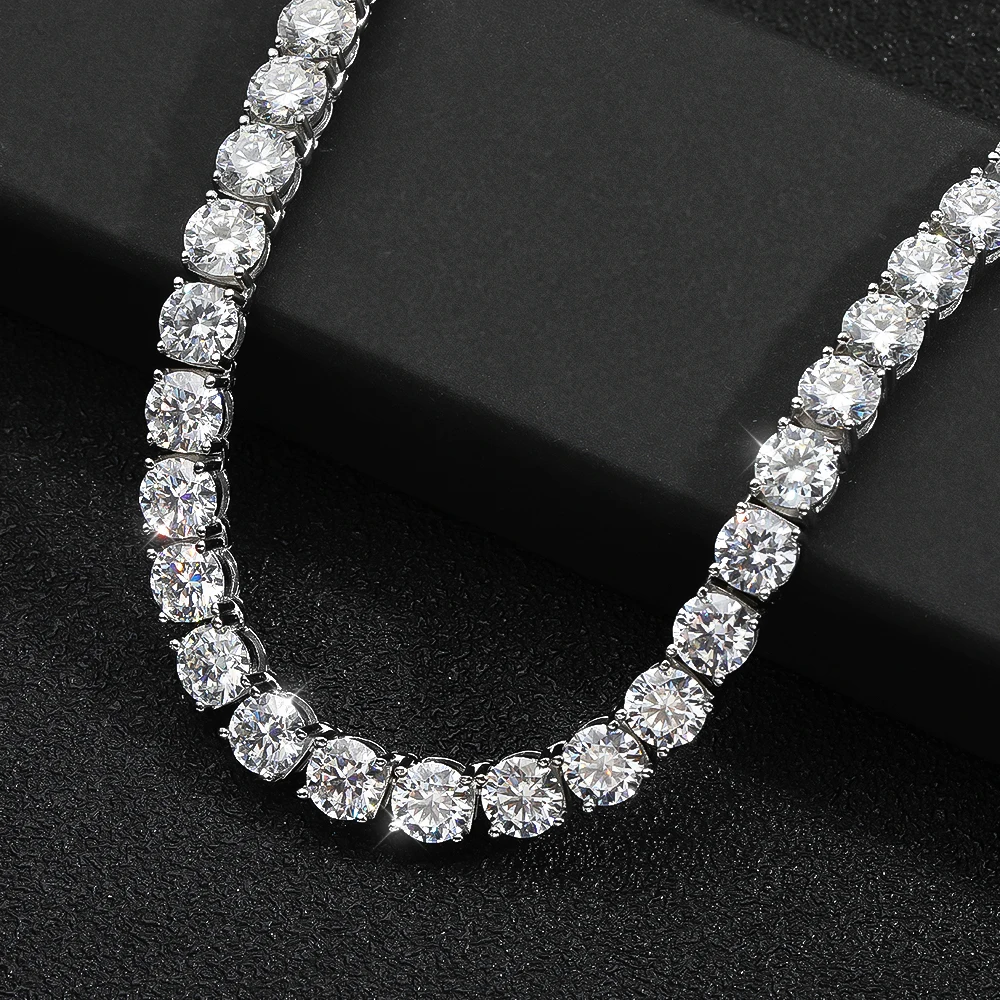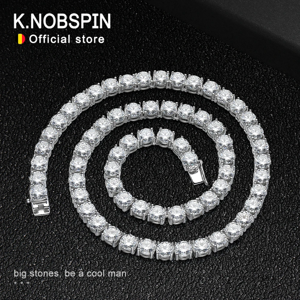 KNOBSPIN D VVS1 6.5mm Full Moissanite Tennis Necklace for Women Man Sparkling Diamond with GRA 925 Sterling Silver Neck Chain
