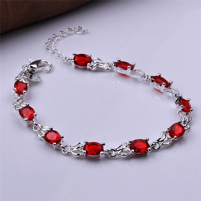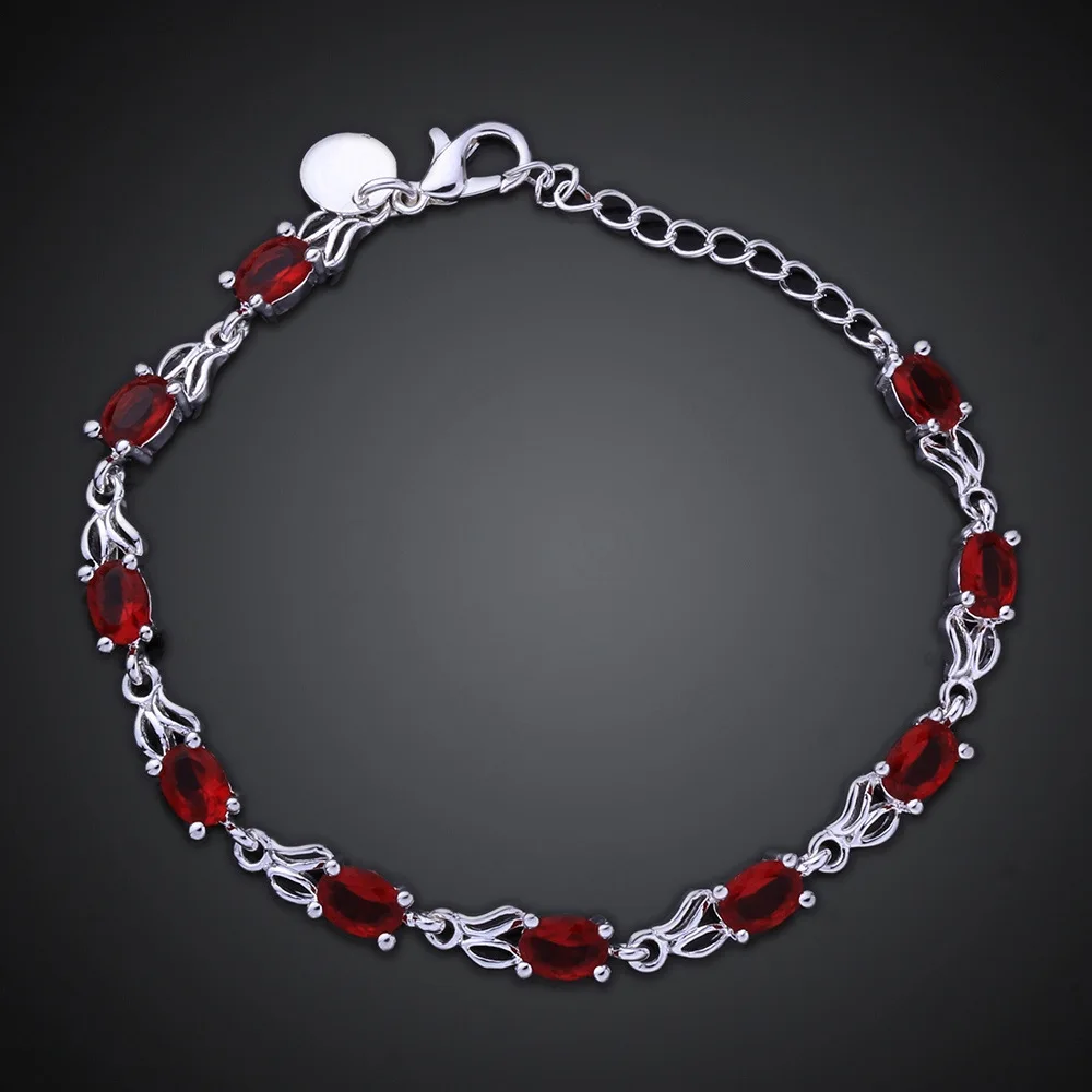 LEKANI Red Topaz Bracelets For Female Real 925 Sterling Silver Deep Red Gemstone Bracelet For Student Birthday Gift