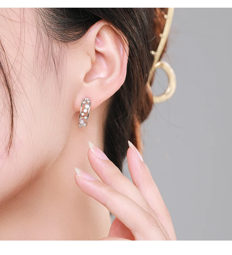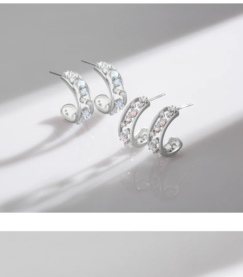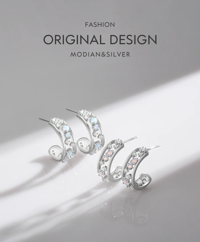 Be the first to review “MODIAN 925 Sterling Silver Fashion Hollow Out C Hoop Stud Earrings For Women Delicate Pink Blue Opals Ear Pins Fine Jewelry”