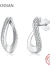 MODIAN 925 Sterling Silver Shell Pearl Geometric Ear Buckles Elegant Party Hoop Earrings For Women Daily Fine Jewelry