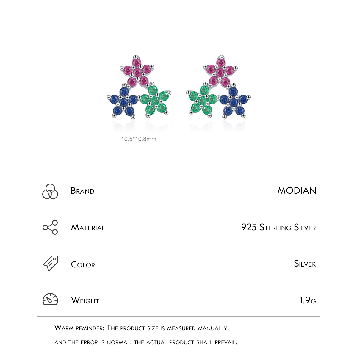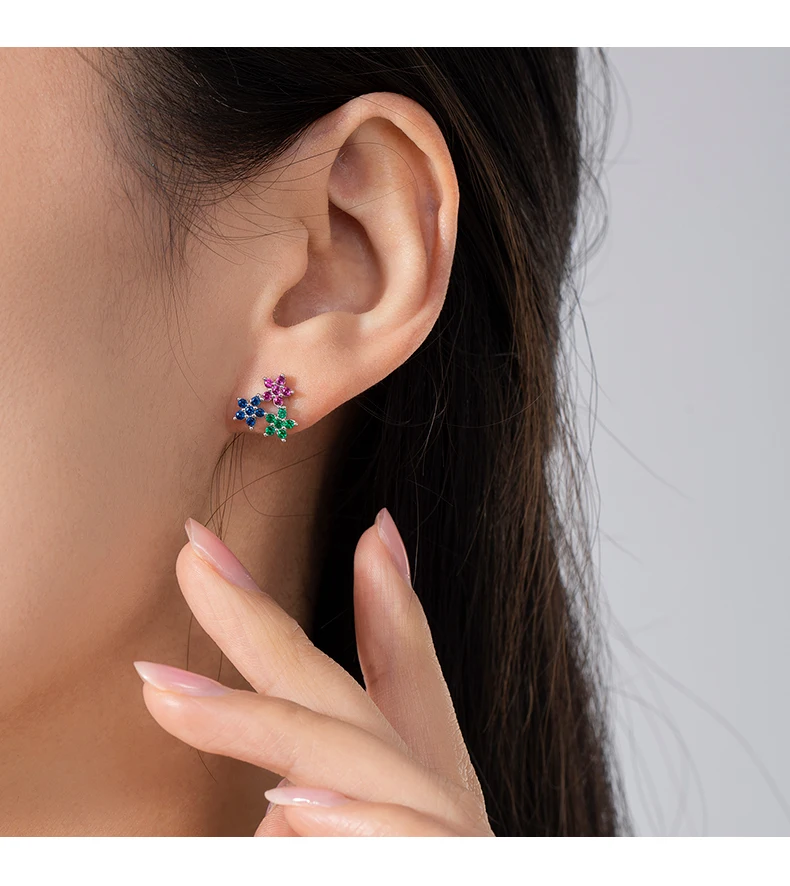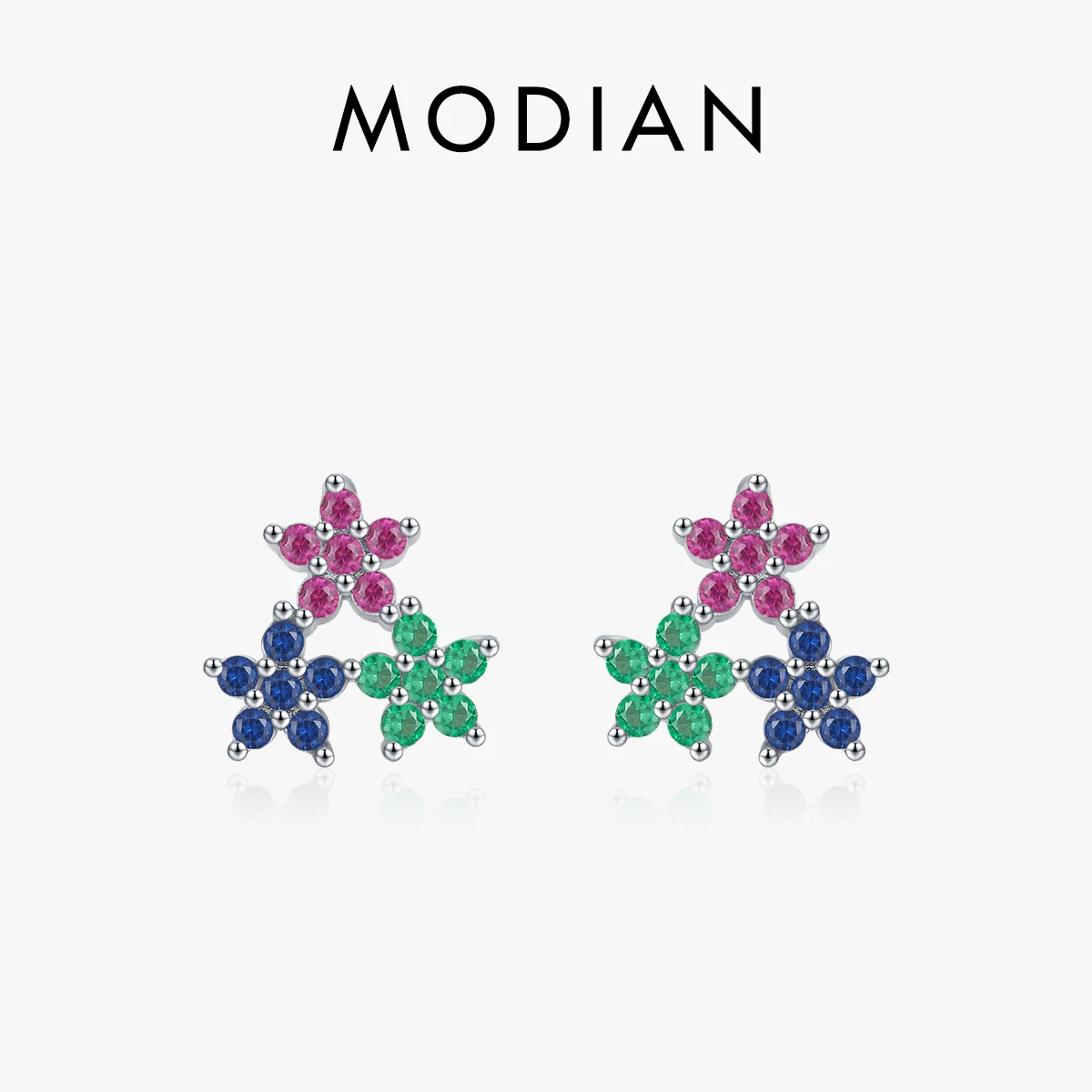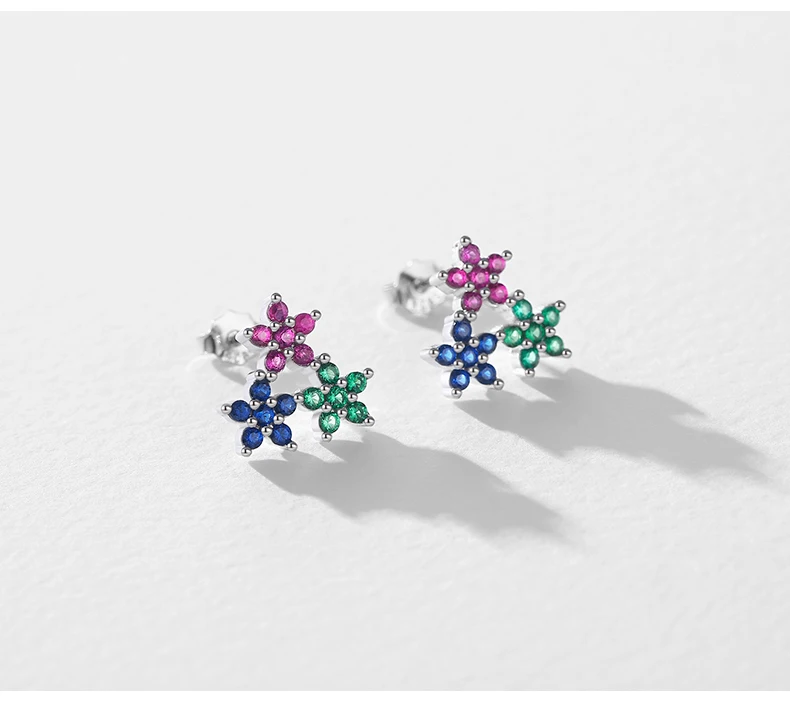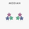 MODIAN Real 925 Sterling Silver Fashion Colorful Cubic Zirconia Ear Studs Delicate Flower Stud Earrings For Women Fine Jewelry