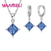 New Big Promotion 925 Sterling Silver Shiny Square Zircons Pendant Necklace And Earrings Jewlery Sets For Wholesale