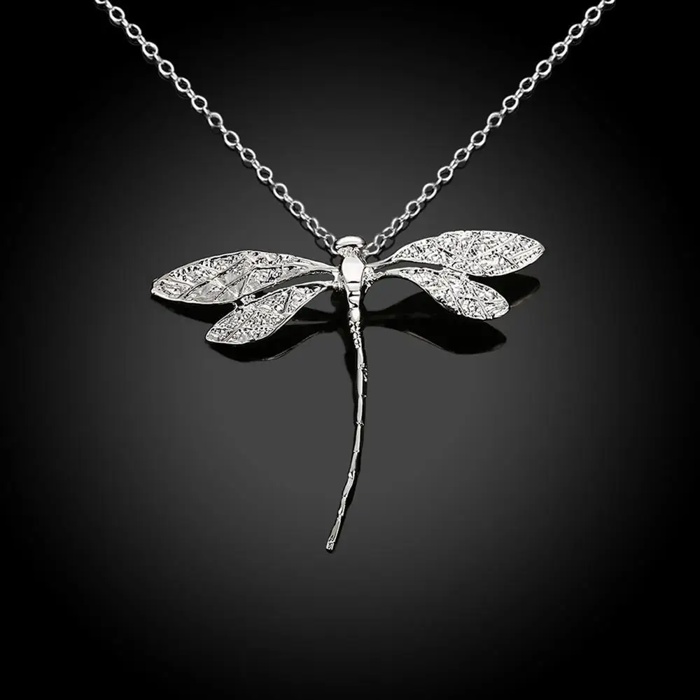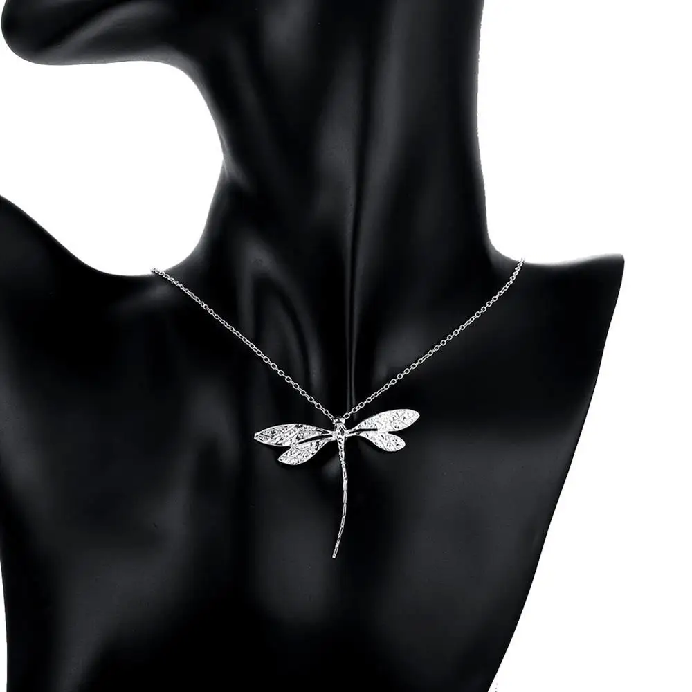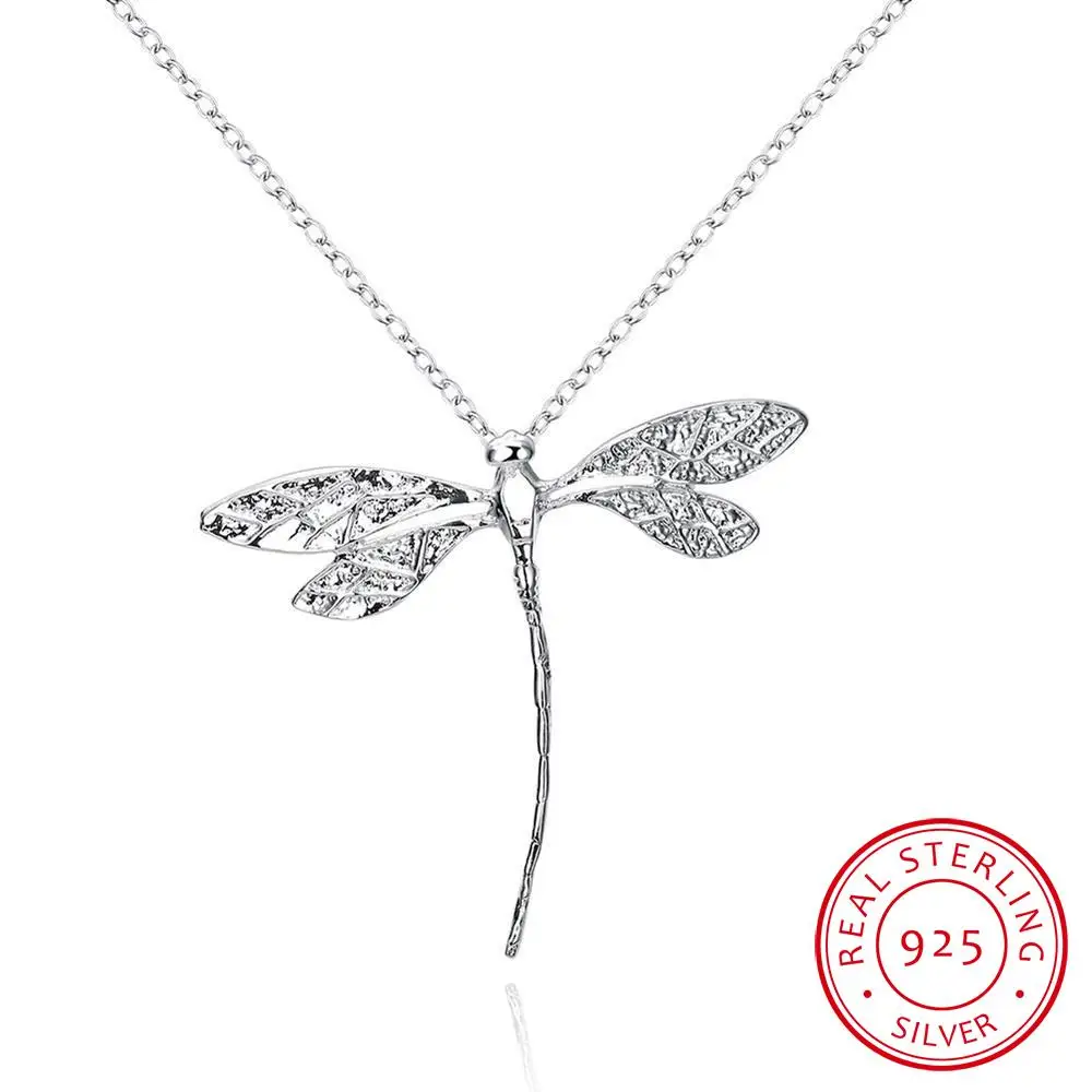 New Fashion 925 Silver Jewelry Long Dragonfly Pendants Necklaces 20″ Chains For Women Valentine’S Day Gifts