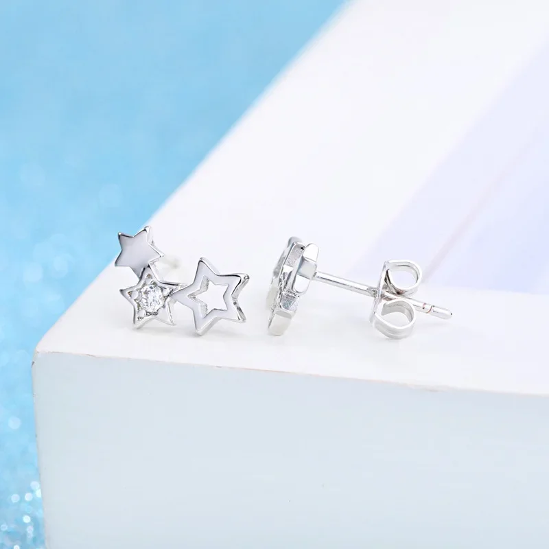 New korean fashion 925 Sterling Silver luxury star Crystal stud Earrings for Women Jewelry Wedding Accessories Party Couple Gift