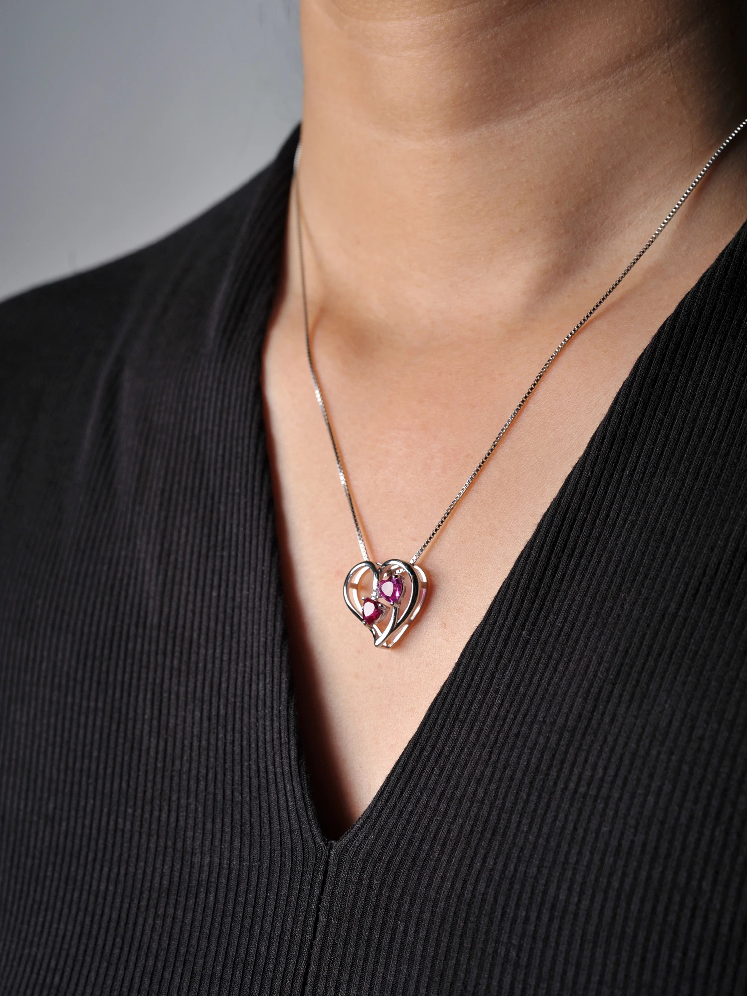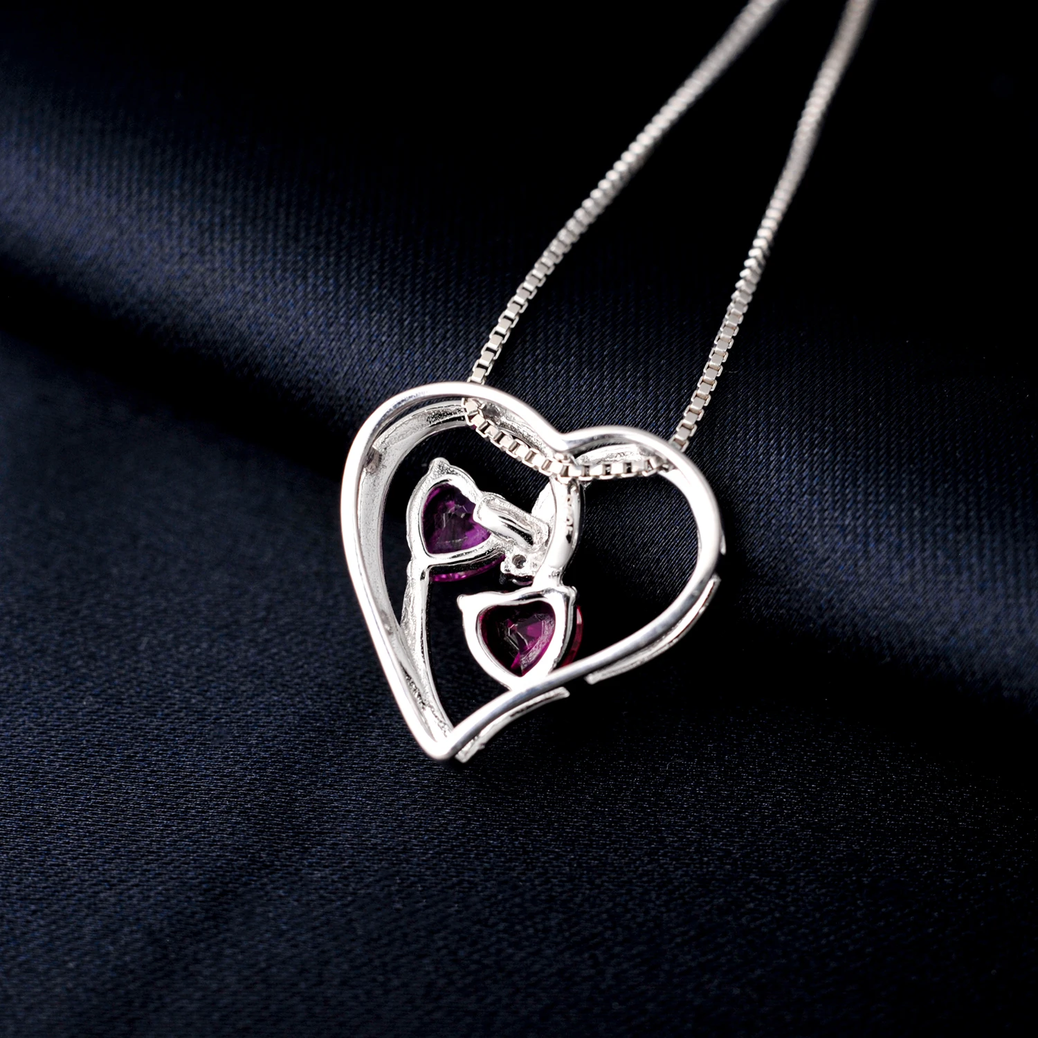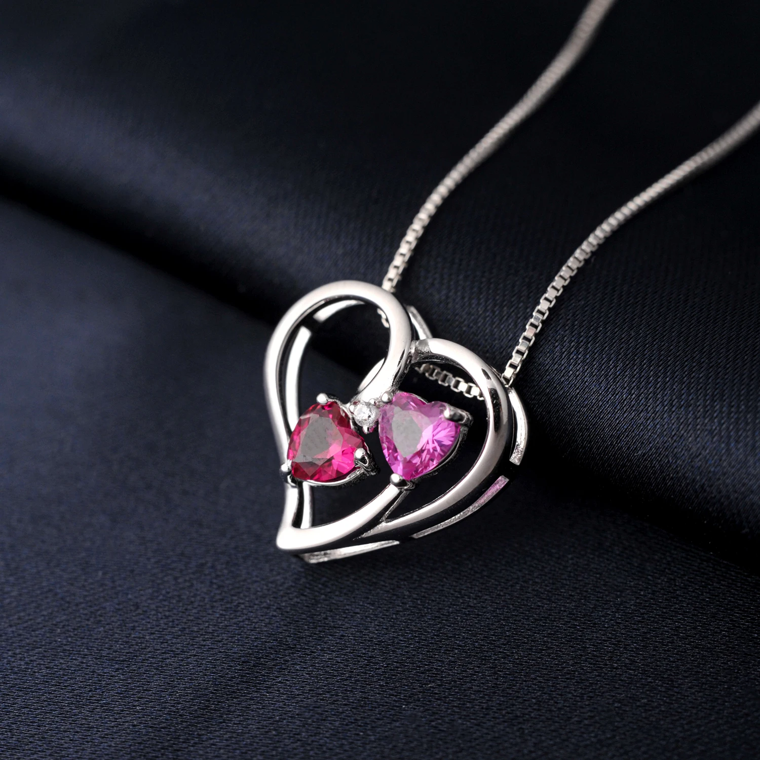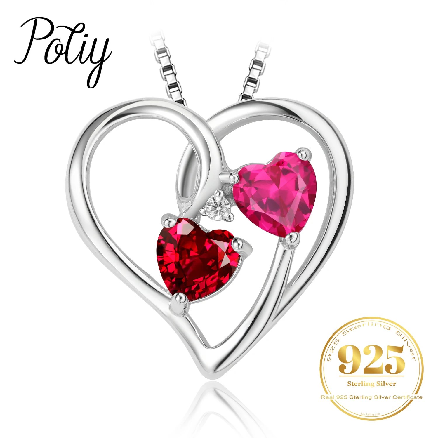Potiy Heart Shape Created Ruby Pink Sapphire cute Pendant Necklace 925 Sterling Silver for Women valentines day gift Jewelry