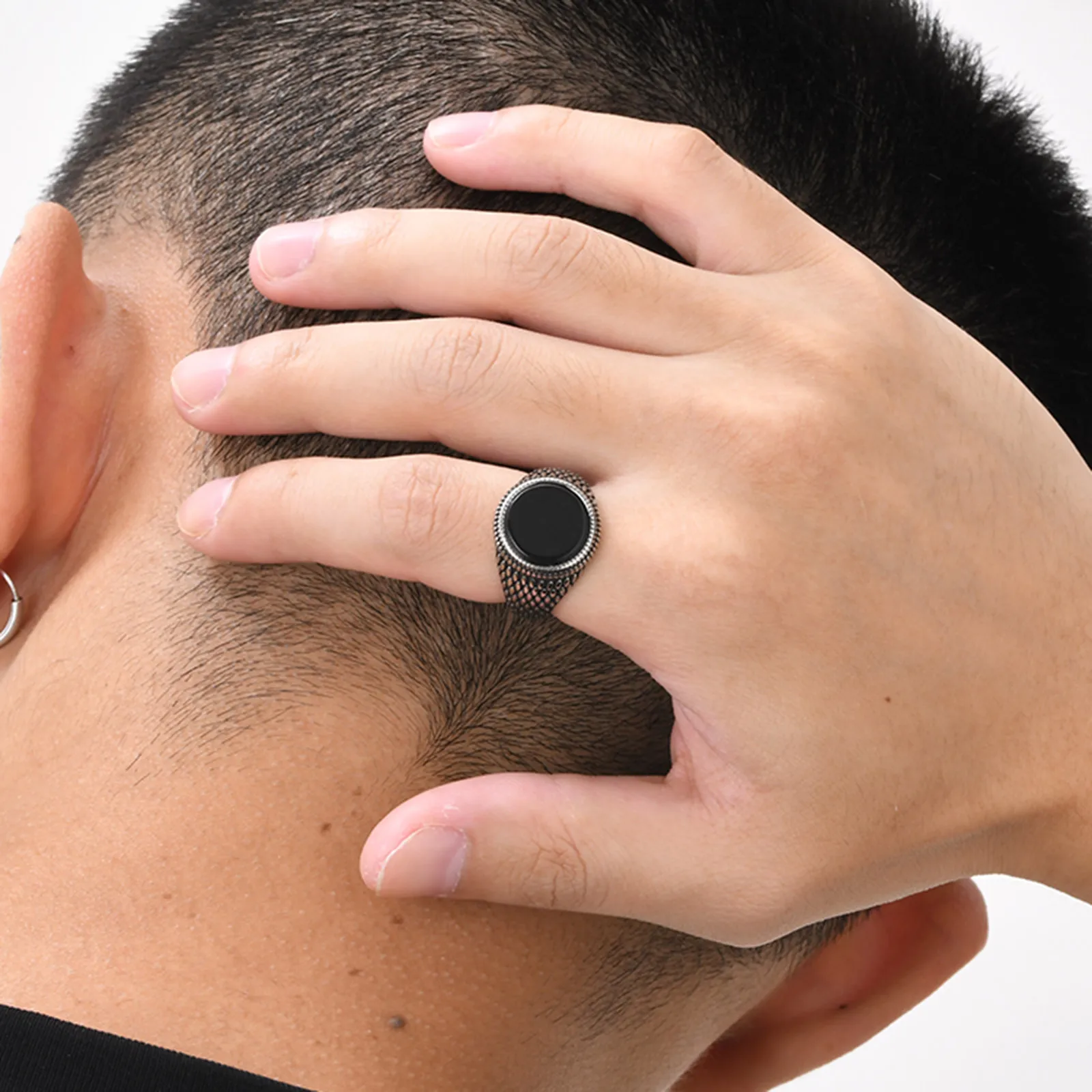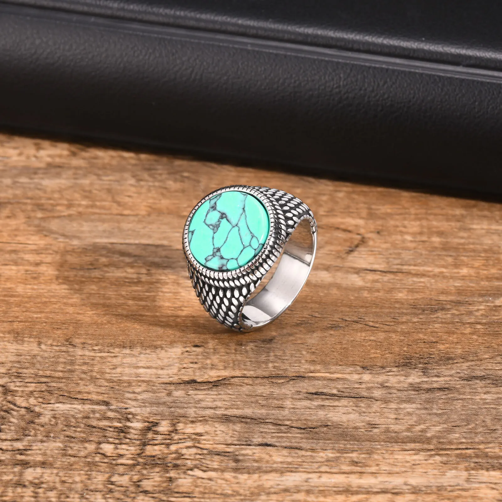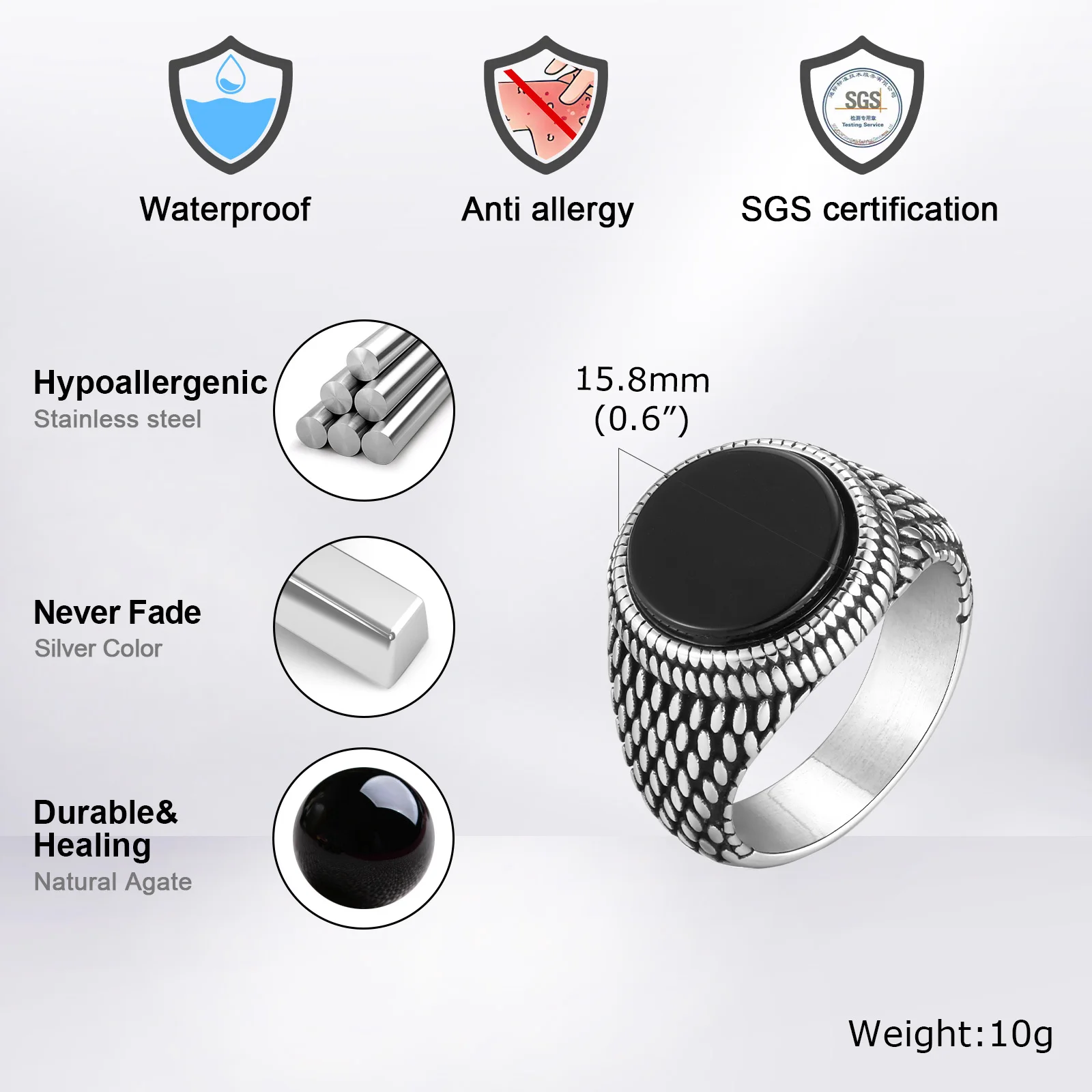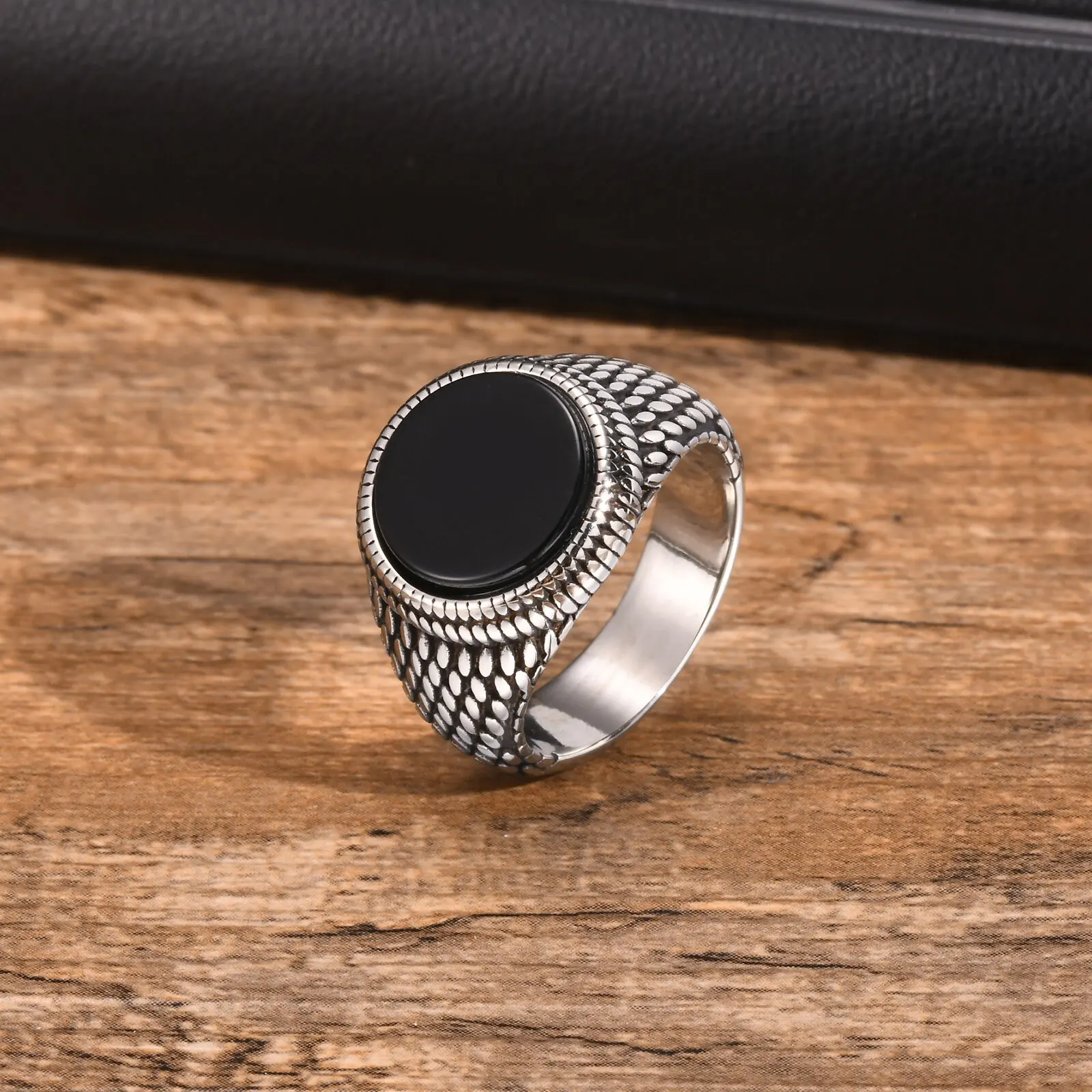Punk Round Gemstone Rings,Stainless Steel Scales Ring Band Finger,Stylish Hiphop Signet Ring Jewelry Gift for Him Boys
