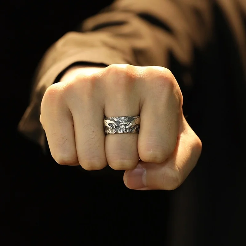 QEENKISS 925 Sterling Silver Vintage God Hand Ring for Men Jewelry Wholesale Birthday Wedding Party Boyfriend Father Gift RG7002