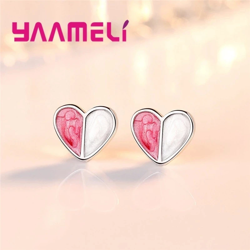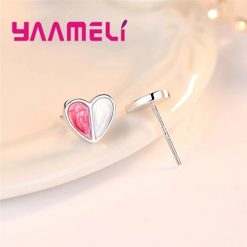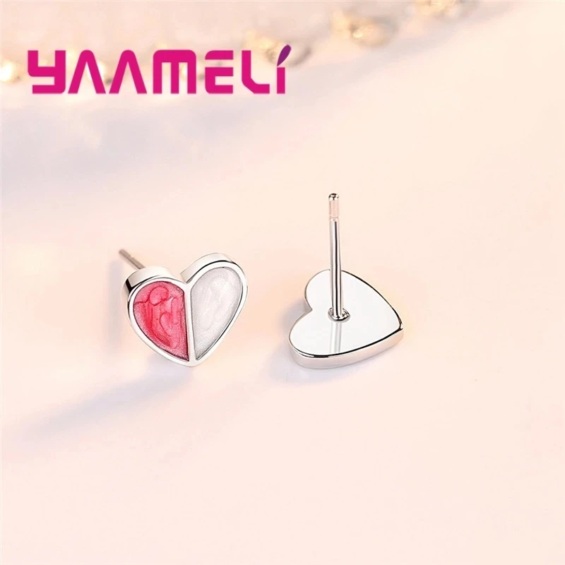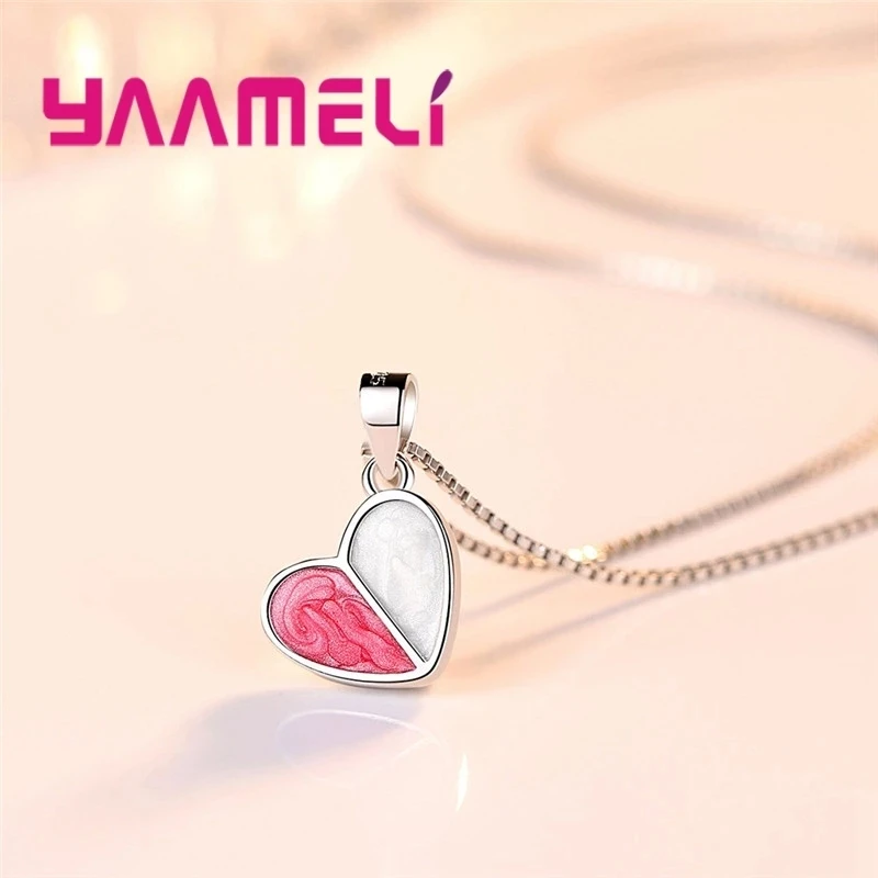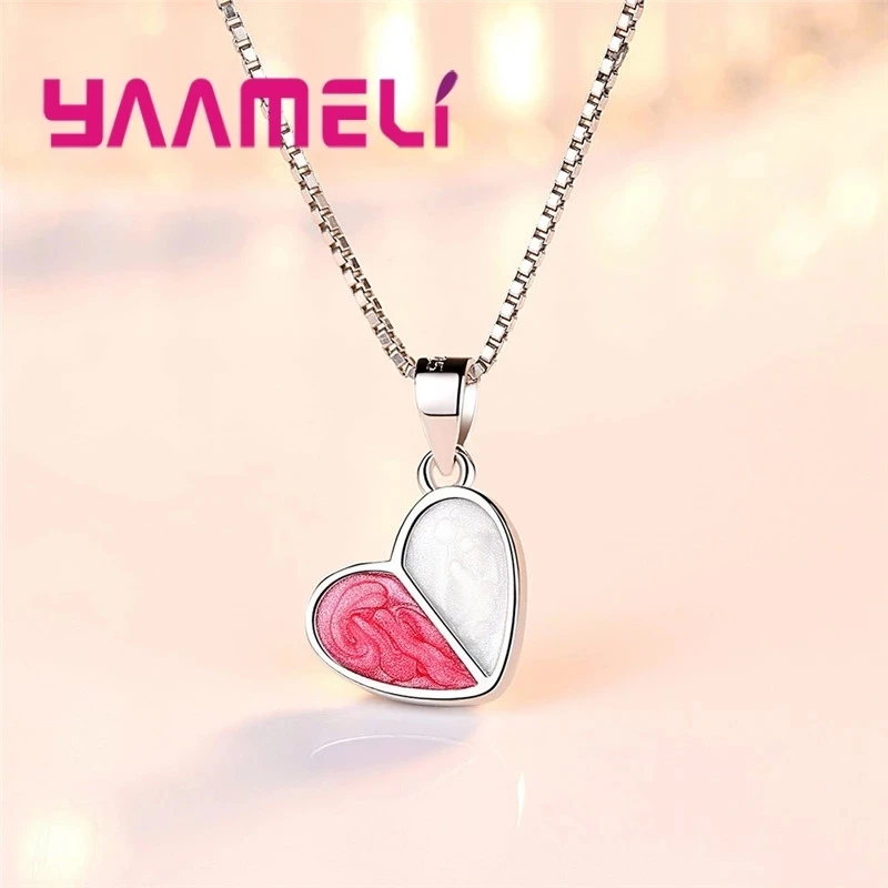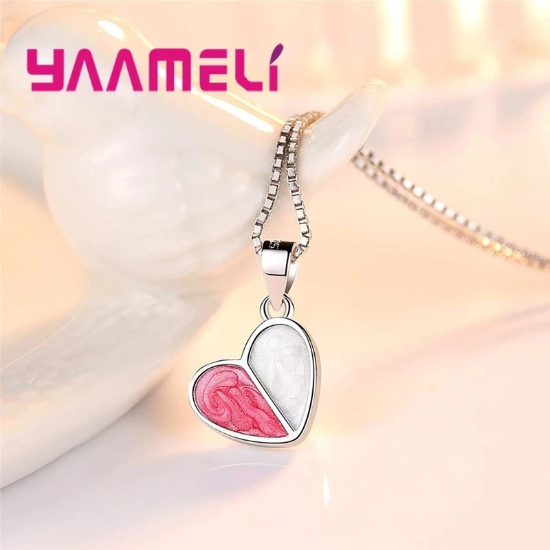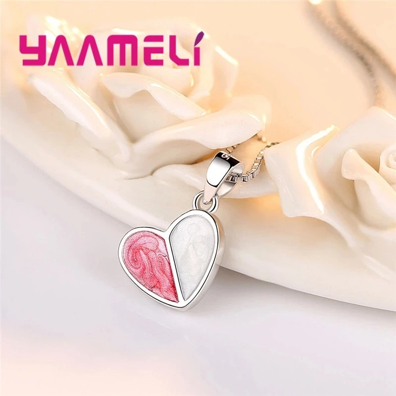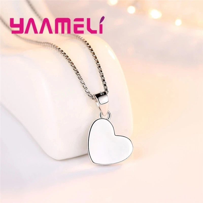 Real Pure 925 Silver Stud Earrings Necklace Jewelry Sets for Lover Girlfriend Wife Valentines Birthday Gift Romantic Heart Shape