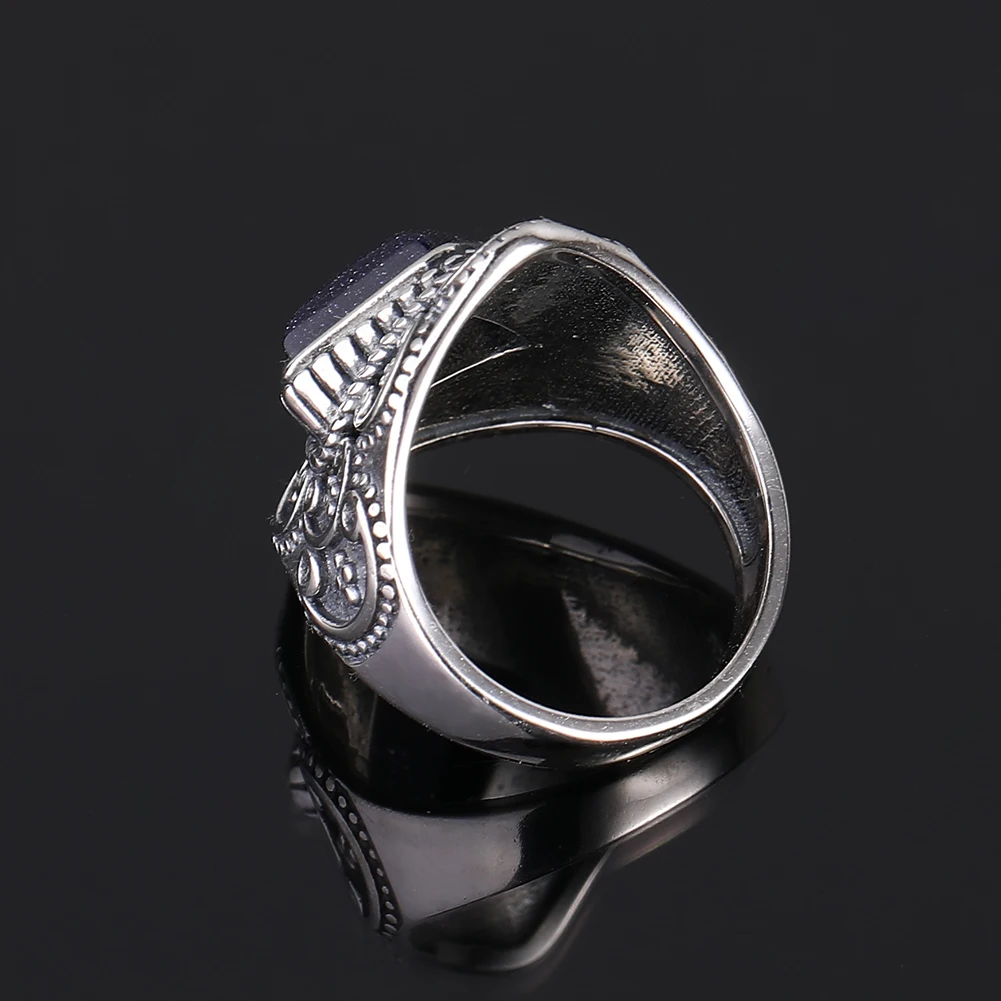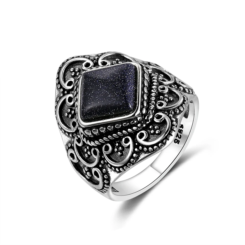 Retro Generous Natural Blue Sandstone Gemstone Rings Anniversary Gift Fine Jewelry S925 Sterling Silver Rings for Women