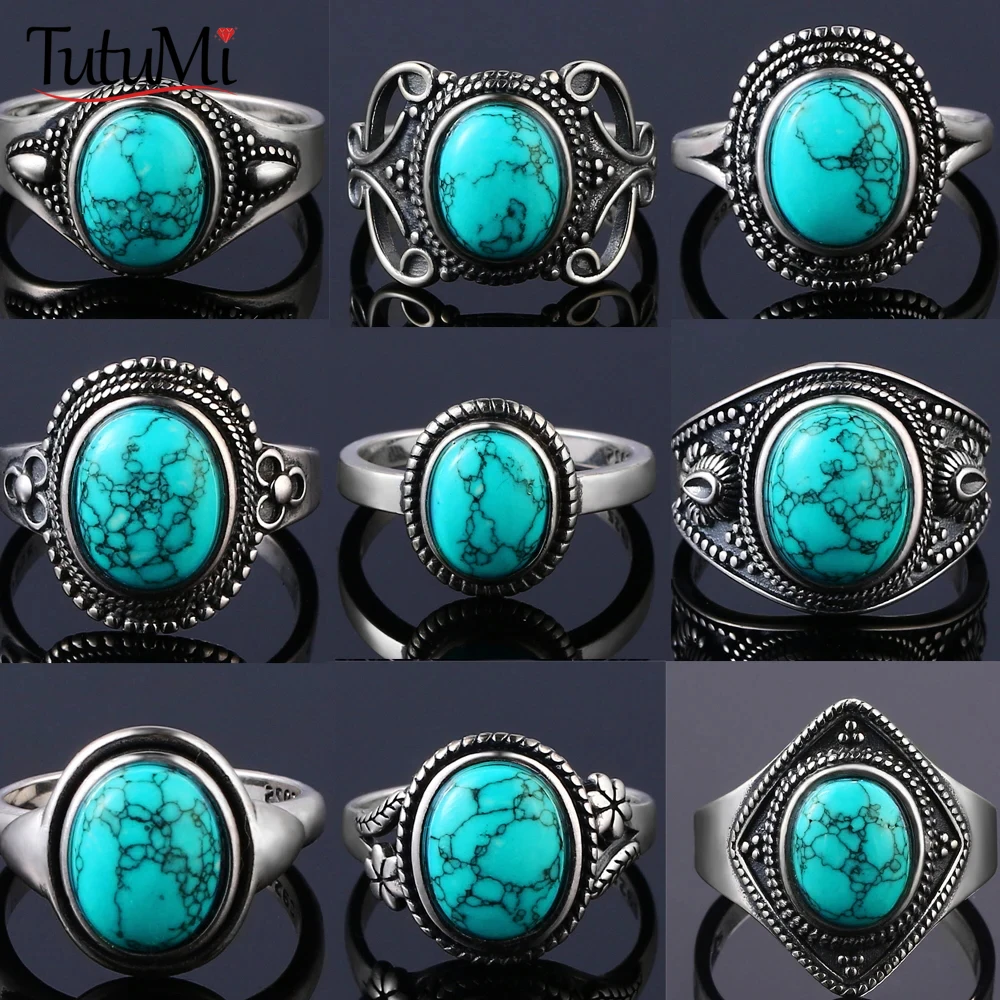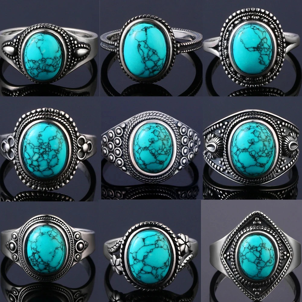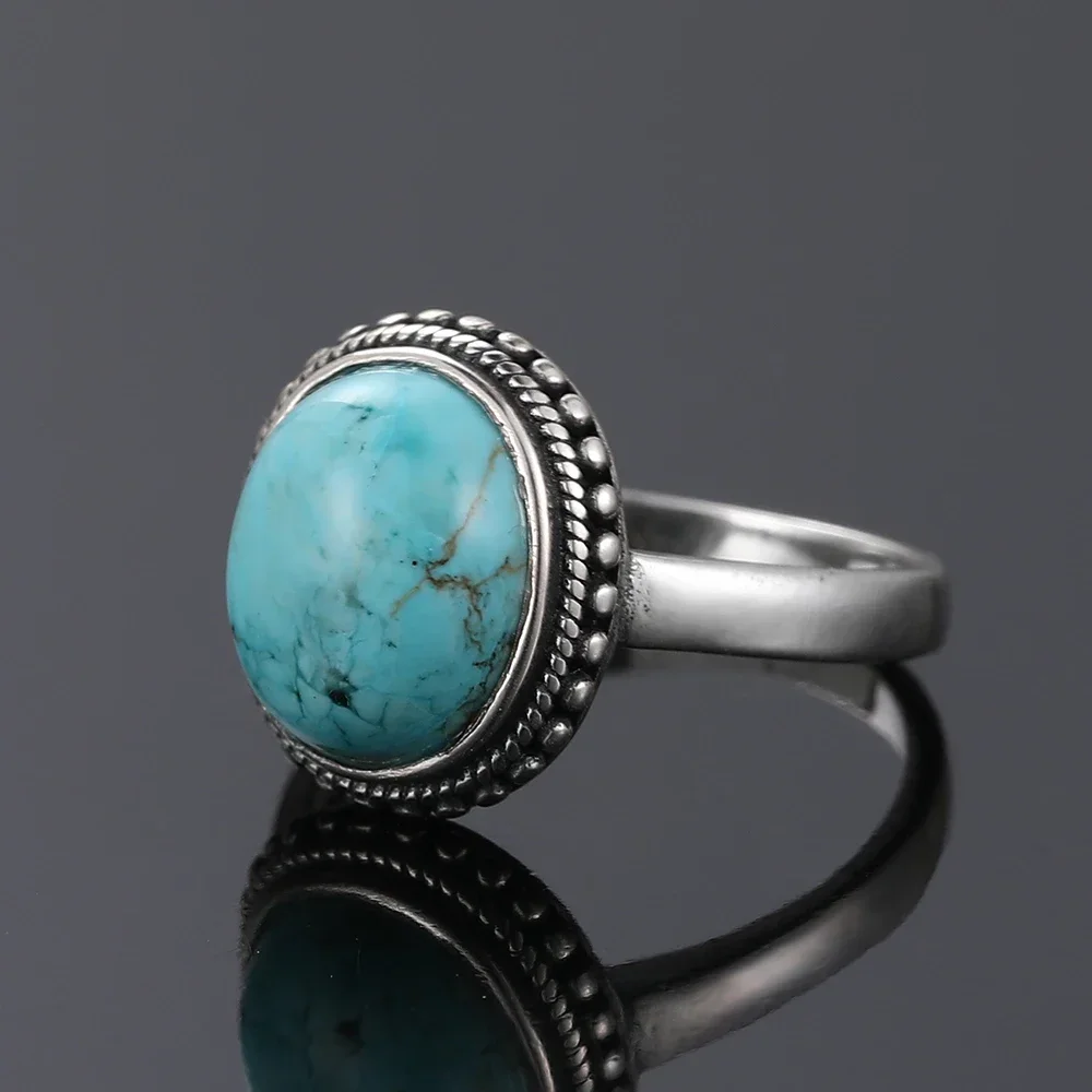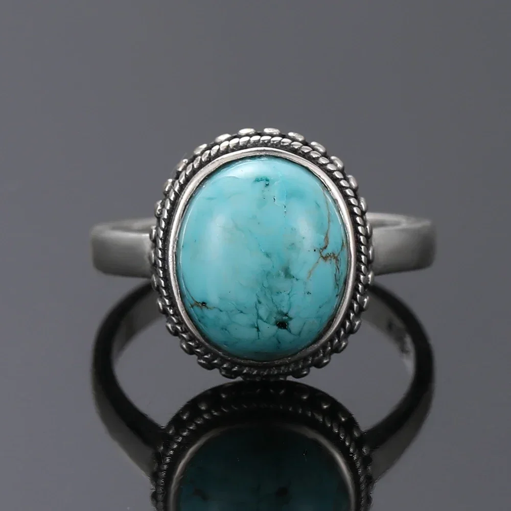 S925 Sterling Silver Vintage Ring Natural Turquoise Rings Gift for Women Man Luxury quality Jewelry