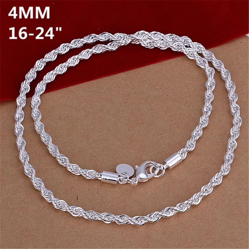 URMYLADY 16-24inch for women men Beautiful fashion 925 Silver charm 4MM Rope Chain Necklace fit pendant high quality jewelry