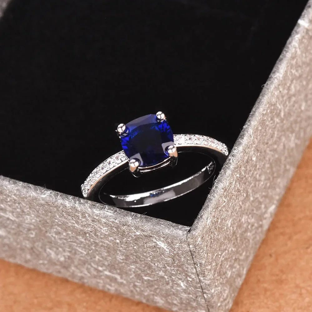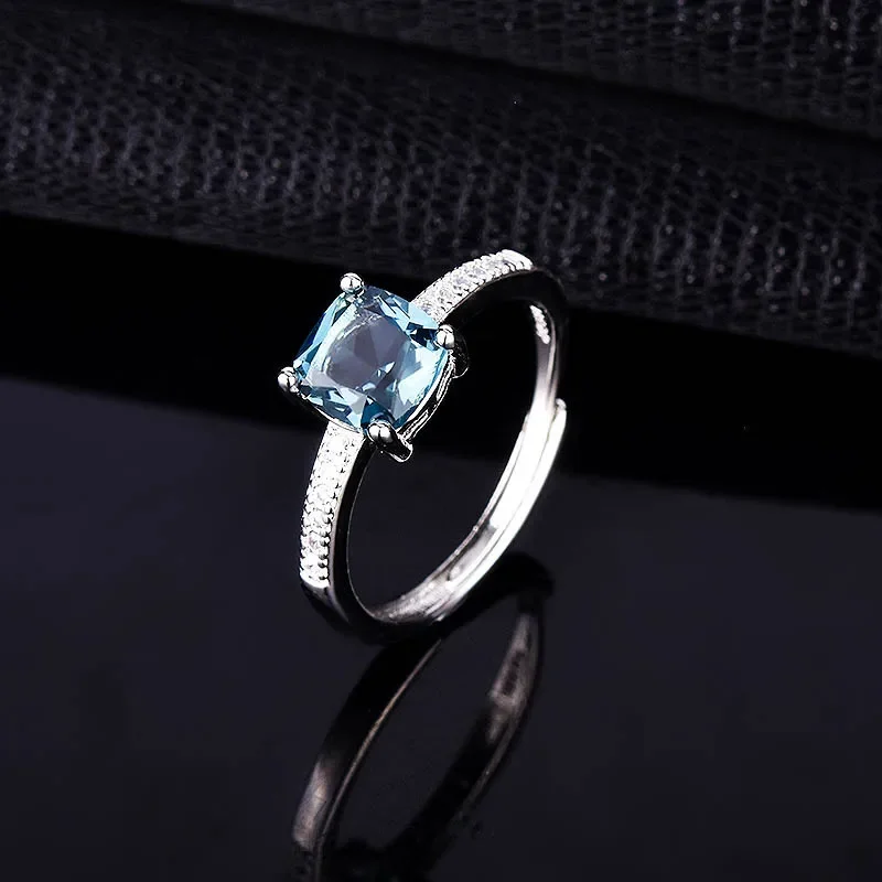 Women’s Jewelry S925 Silver Ring Peacock Blue Aquamarine Zircon Ring Party Engagement Wedding Fashion Rings Jewelry Gifts