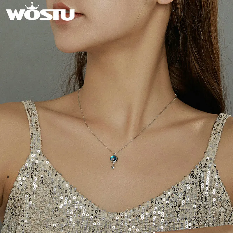 Be the first to review “WOSTU 925 Sterling Silver Moon & Cat Star Necklace Blue Enamel Long Chain Link Necklace For Women Fashion Jewelry CQN422”